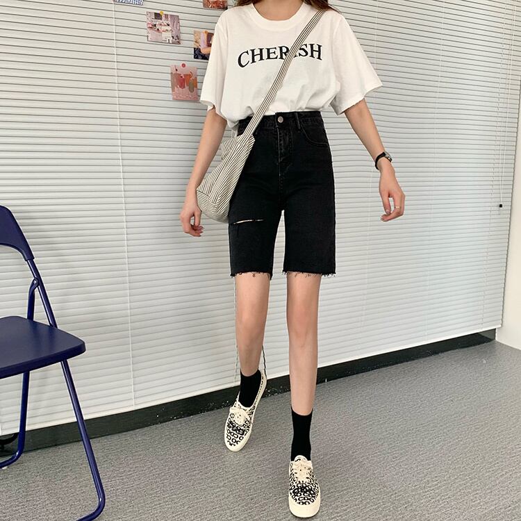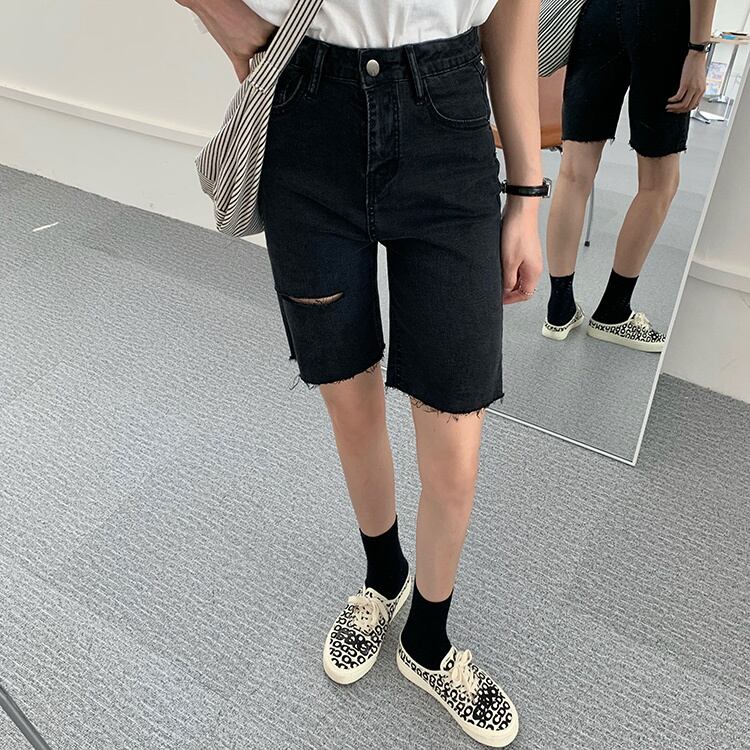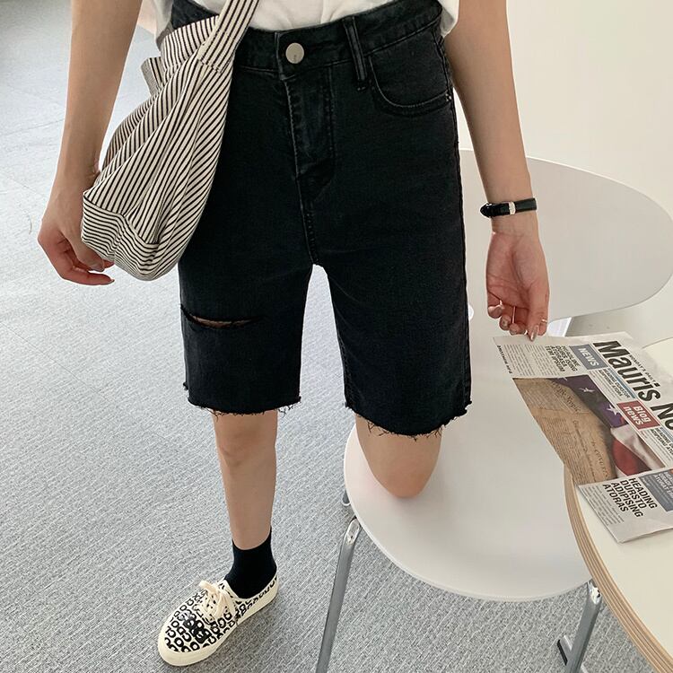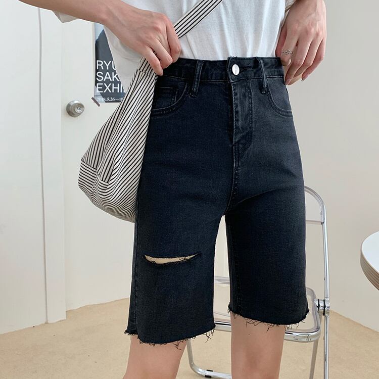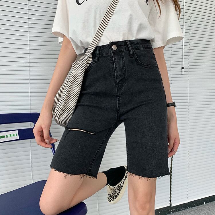 夏服パンツ ブラックジーンズ トレンドハイウェストウェストショーツ 夏物 ウエスト SPM30203231695