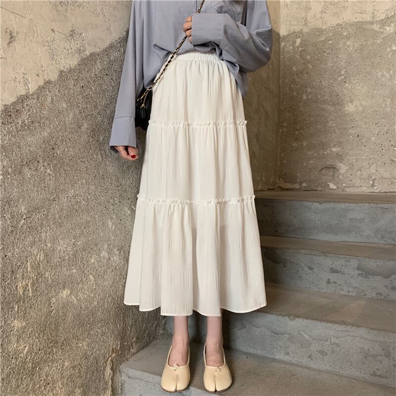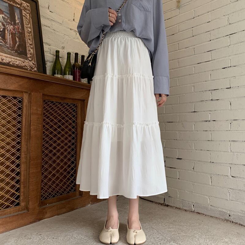 ホワイトスカート レディース夏服薄手ハイウェストウェストAライン 夏物 ウエスト ミドル丈 SPM51419269647