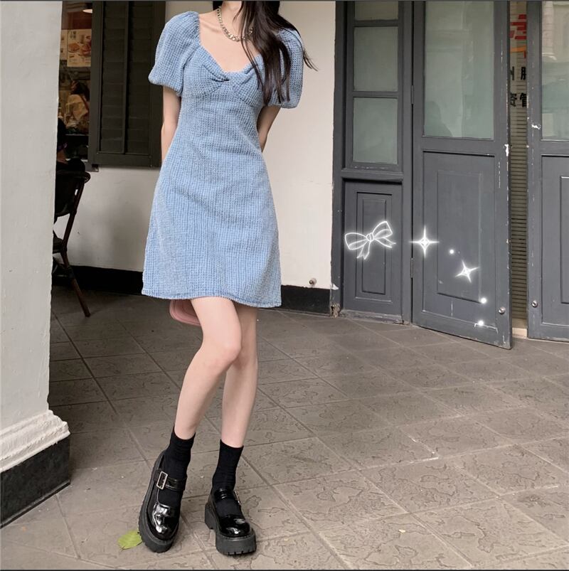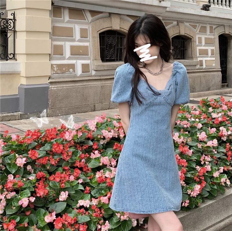 ワンピースレディース夏服Vネックスリーブショートスカート 夏物 SYJ19910518058