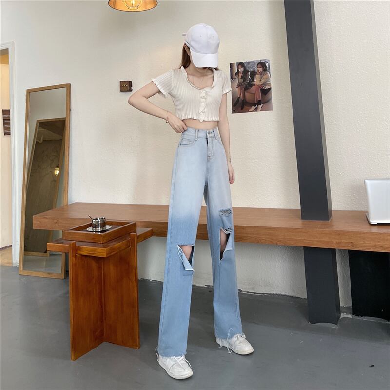 カラージーンズ ルーズ夏服薄手ハイウェストパンツ 夏物 ウエスト SPM3619770263