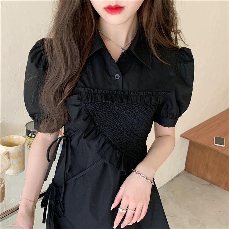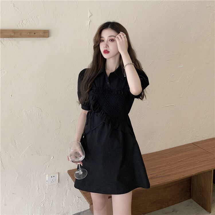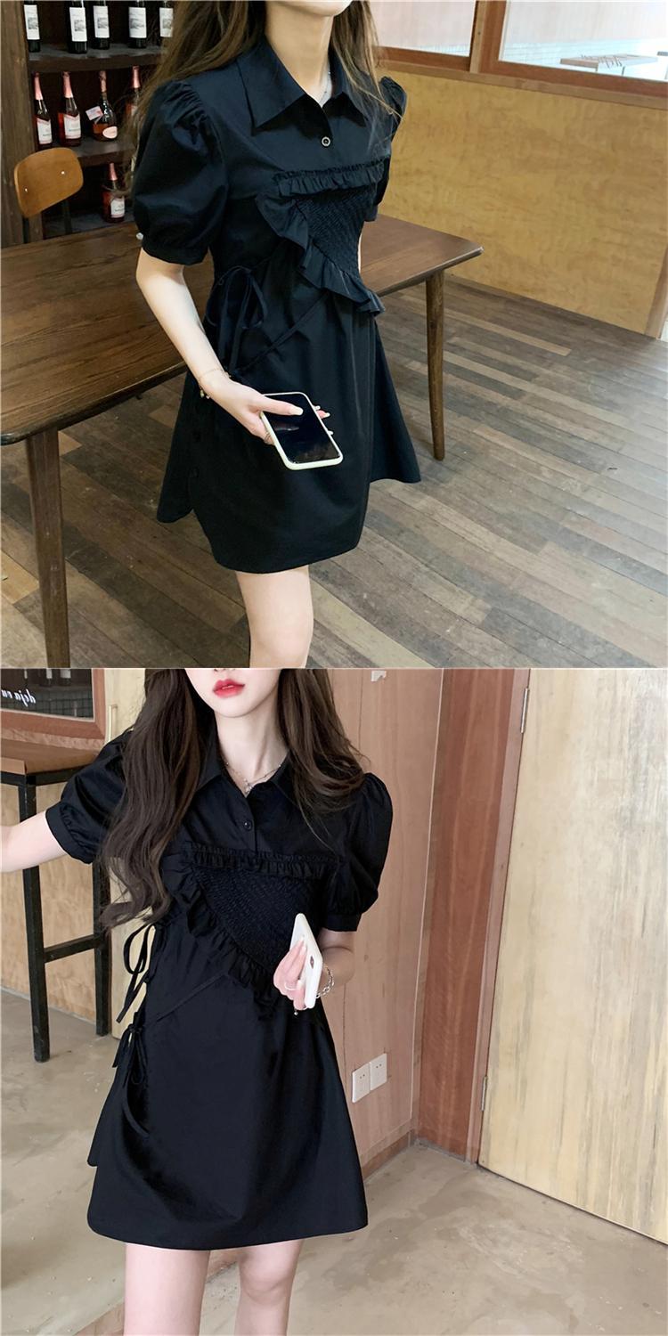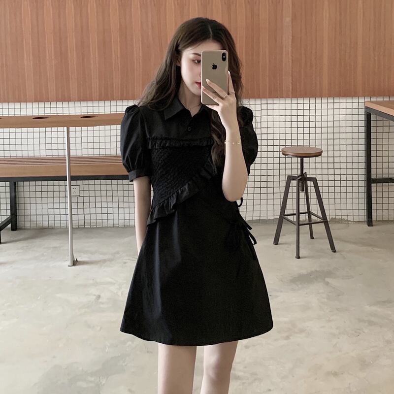 スリーブブラックワンピース夏服スタイルショートスカート 夏物 SPM57235362591