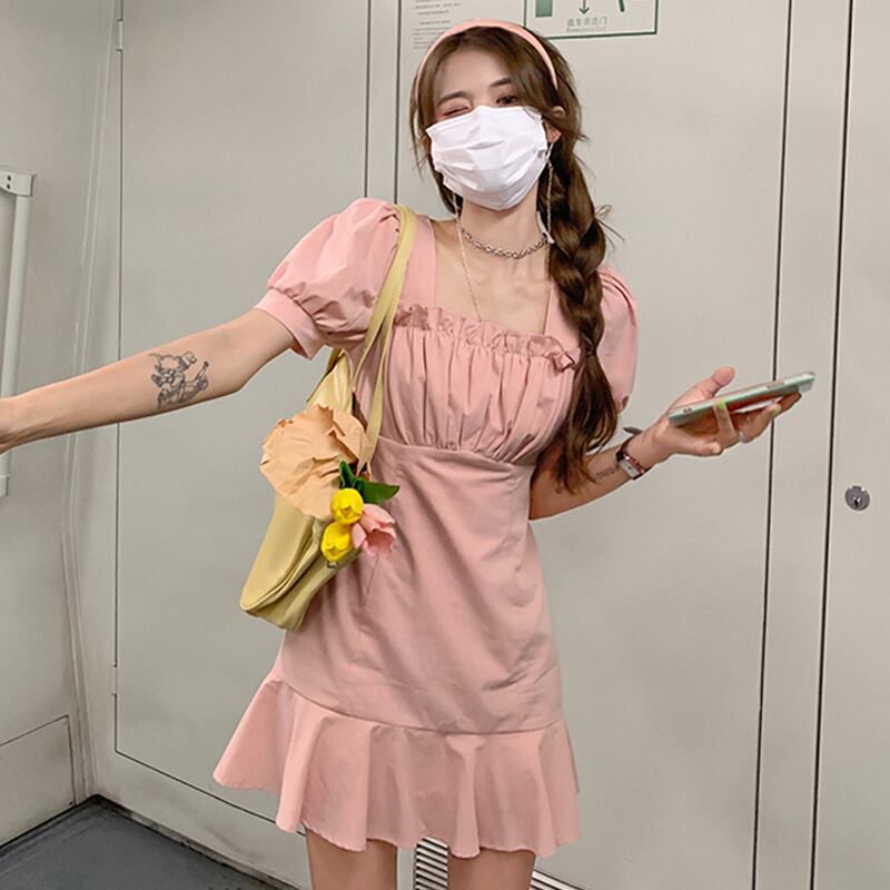 スリーブホワイトワンピースレディース夏服ショートスカート 大人ガーリー スウィート キュート カジュアル 夏物 SYJ24602894429