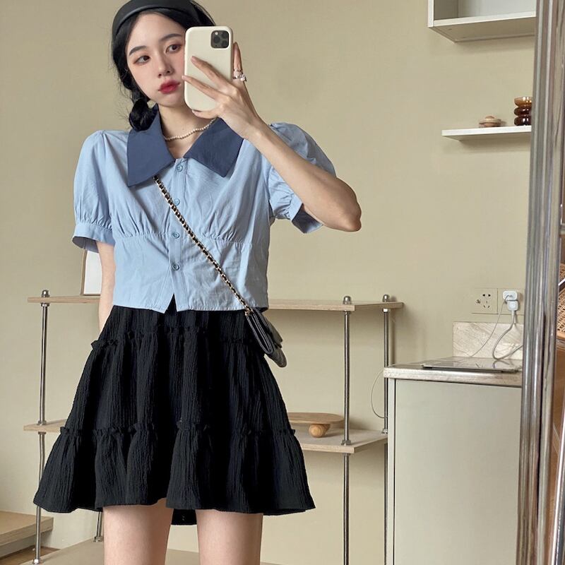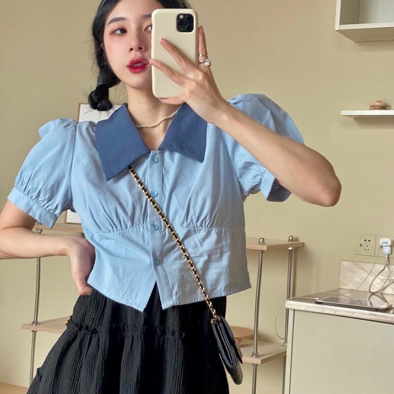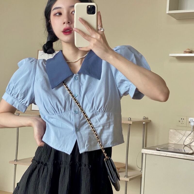 スリーブシャツ レディーススタンダードスタイル夏服ショートトップス レトロ 夏物 SYJ68018207711
