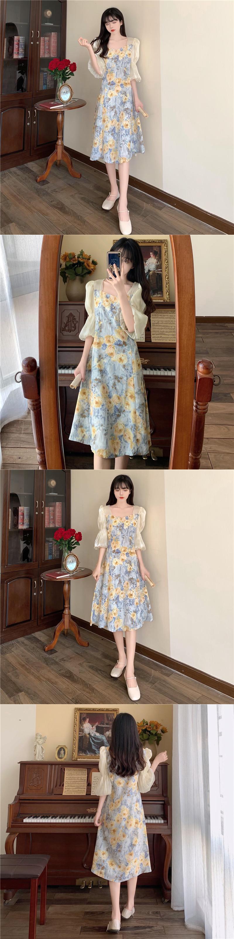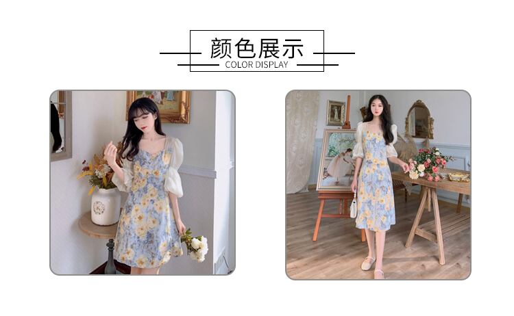 スリーブフローラルワンピースレディース夏服スタイルスカート 夏物 花柄 SYJ22127109611