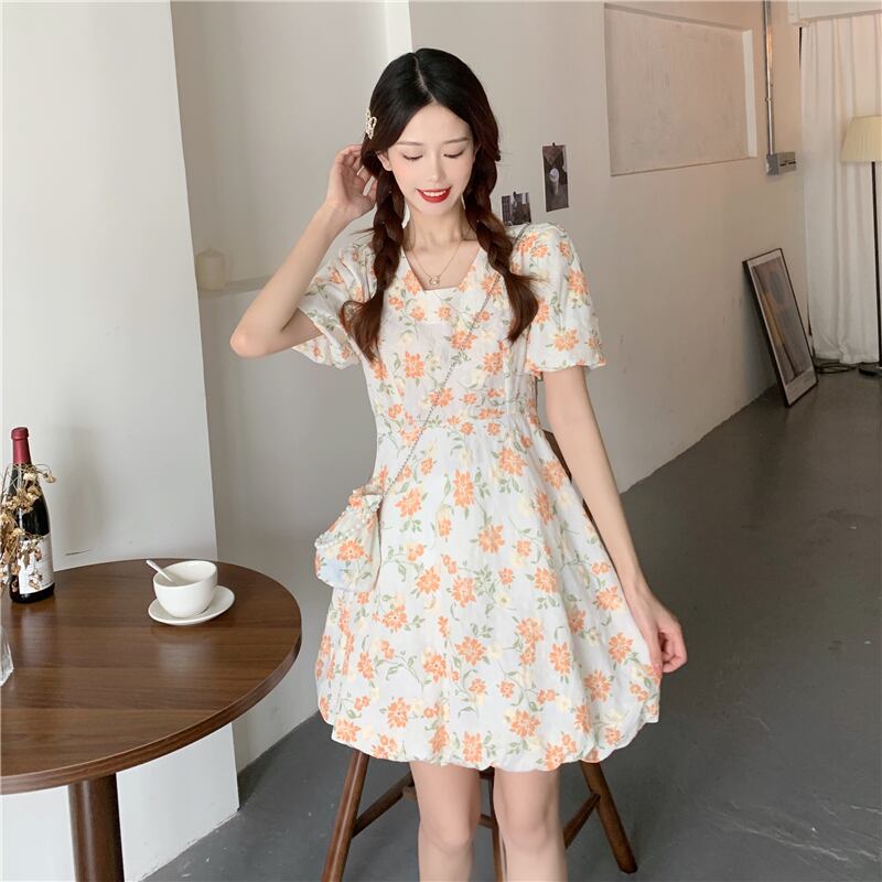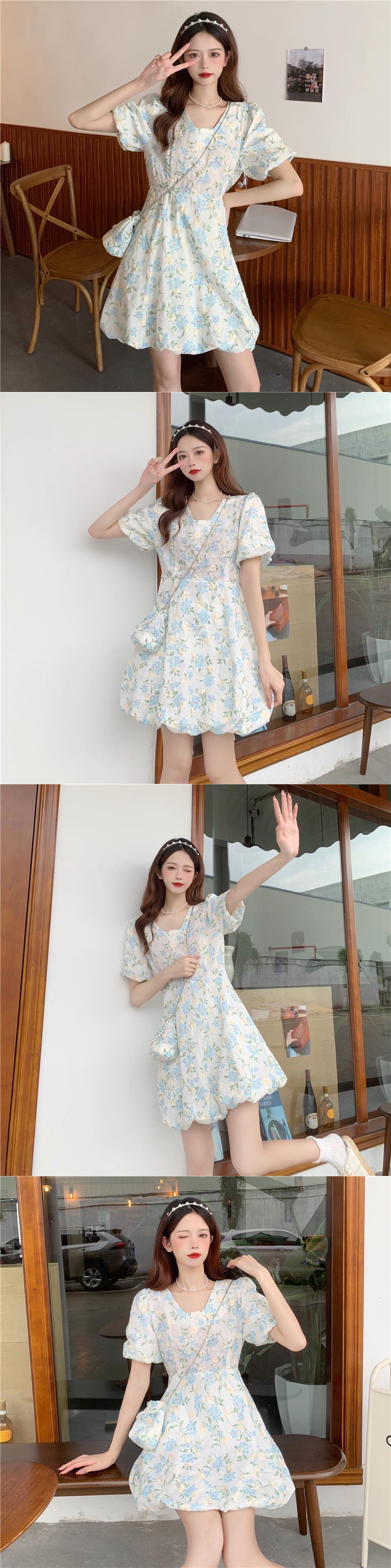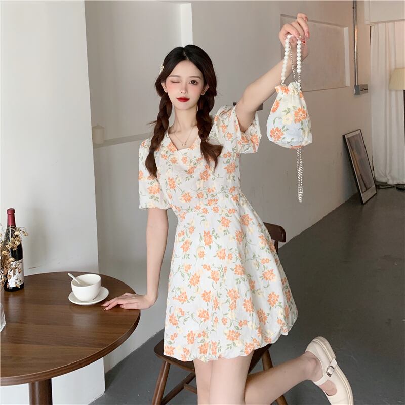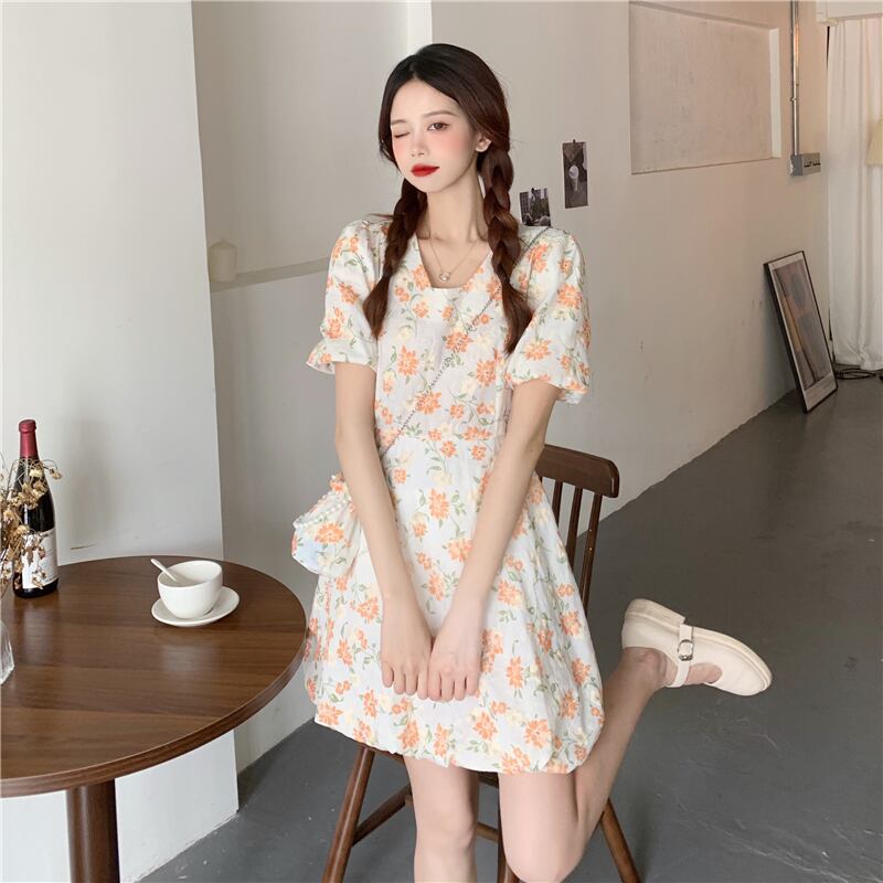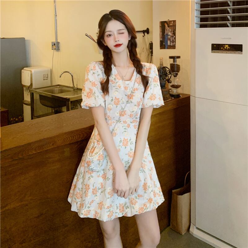 フローラルワンピース夏服スリーブショートスカート 大人ガーリー スウィート キュート カジュアル 夏物 花柄 SYJ98074491130
