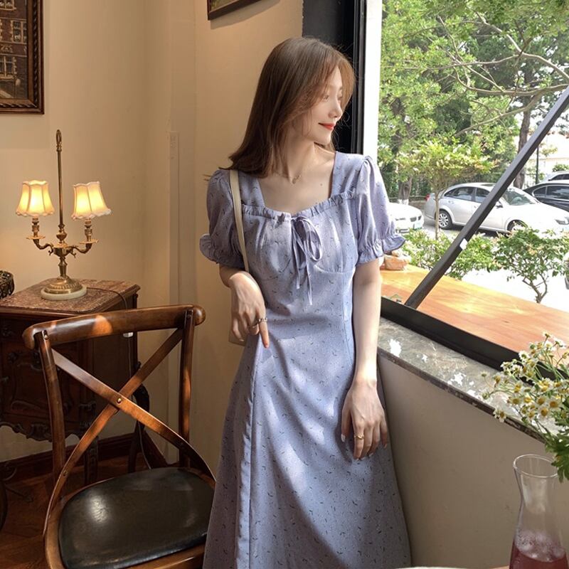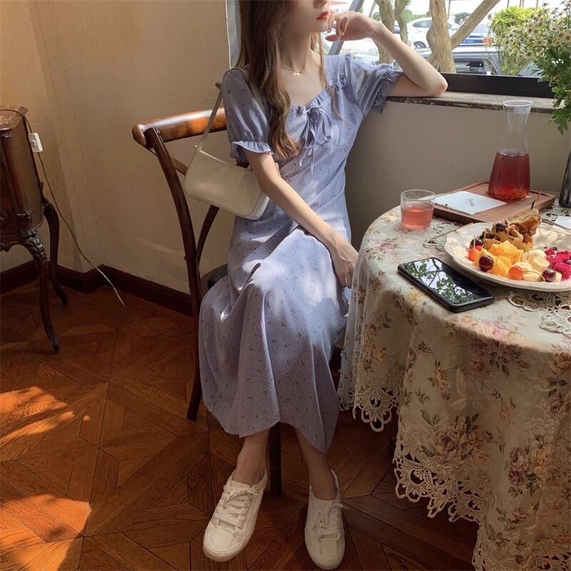 フローラルワンピースレディース夏服スリーブシフォンロングスカート 夏物 花柄 スクウェア SYJ5824746150