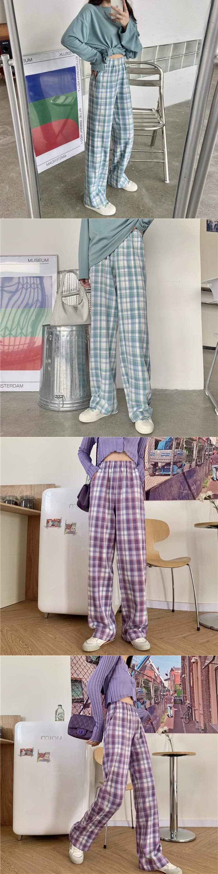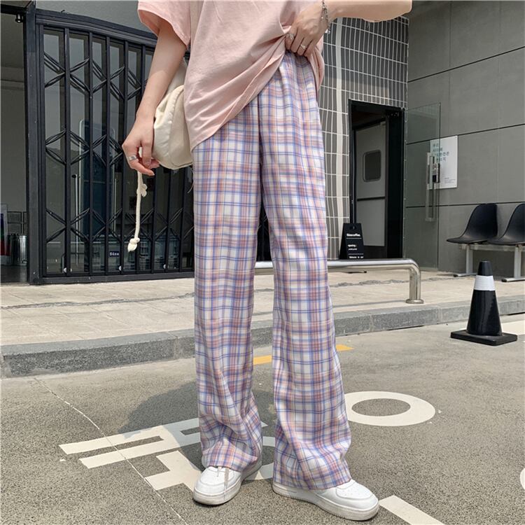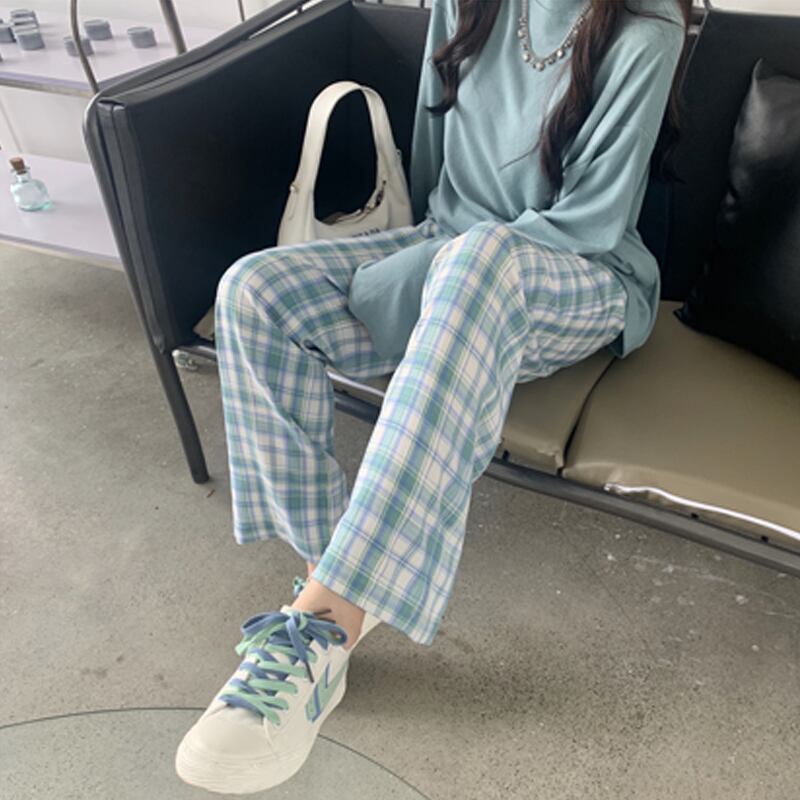 格子柄パンツ ルーズ夏服ハイウェスト薄手 夏物 ウエスト SYJ4528291668