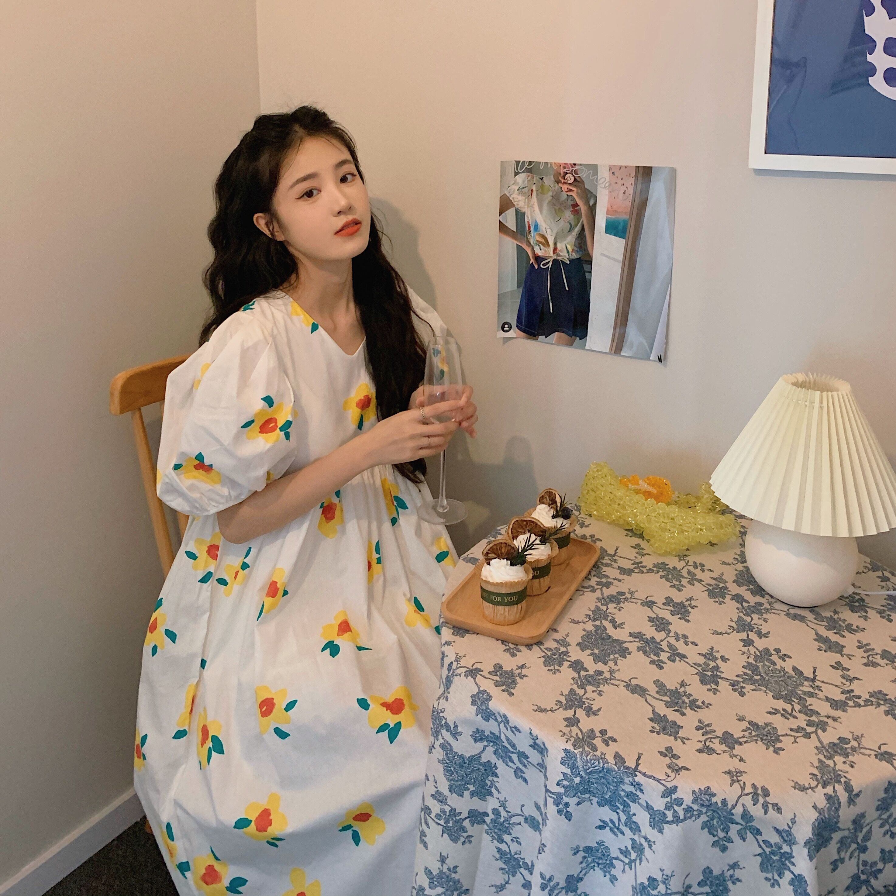 スリーブワンピースレディース夏服ロングスカート 大人ガーリー スウィート キュート カジュアル 夏物 SYJ69616279404