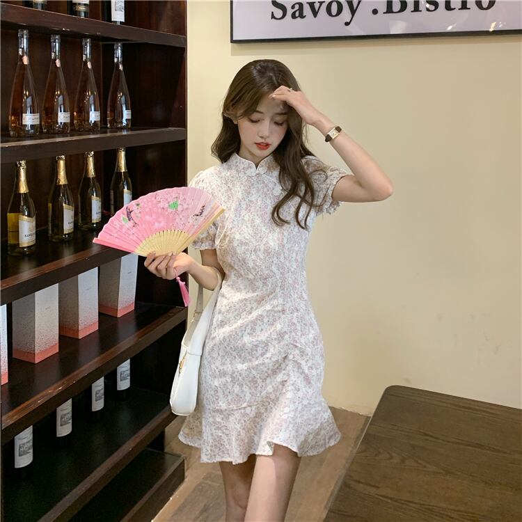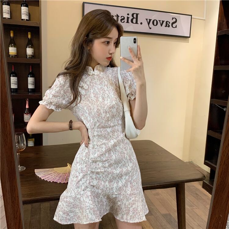 スリーブフローラルワンピース夏服ショートスカート 夏物 花柄 SYJ3048297612