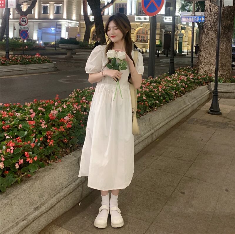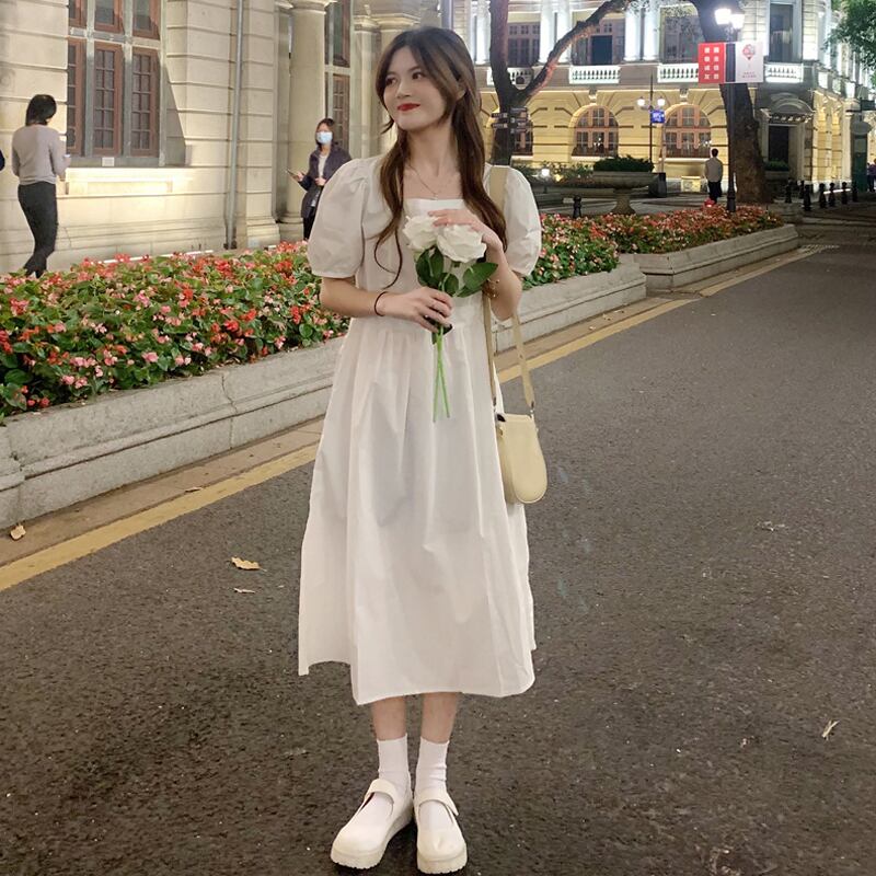 ホワイトスリーブワンピースレディース夏服スタイルロングスカート 夏物 SYJ64670437537