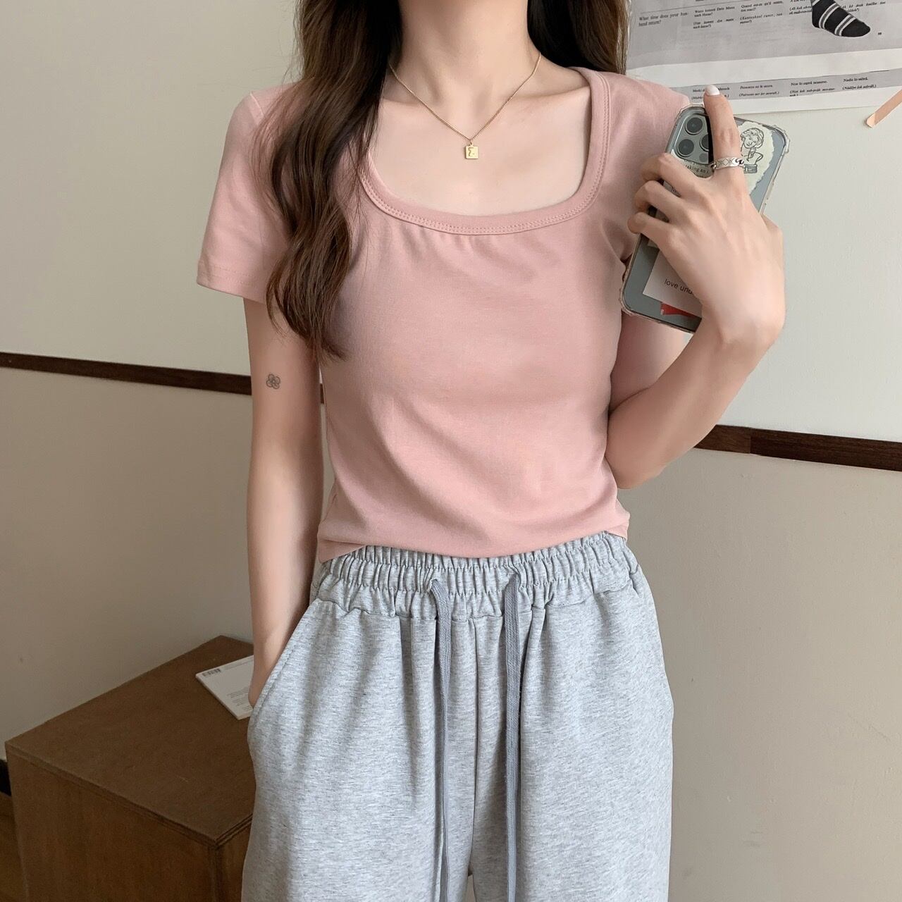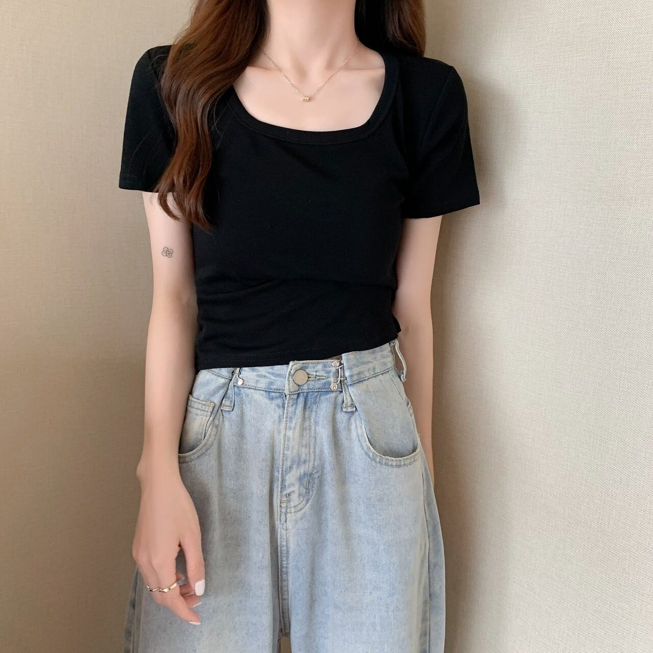 カラーショートTシャツ夏服スタイルトレンド 夏物 スクウェア ヨーロピアン ワンナンバー89168420354