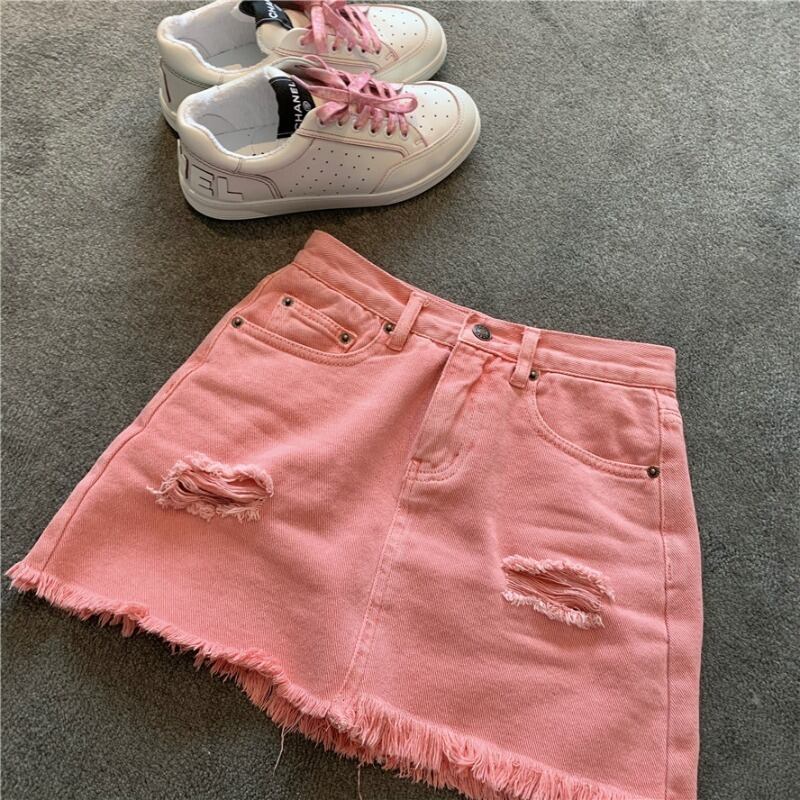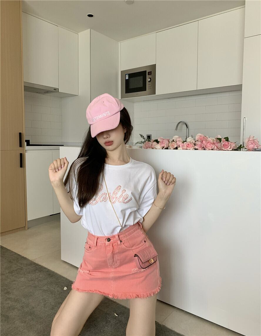 色:ホワイトTシャツ822,ピンクデニムスカート6024