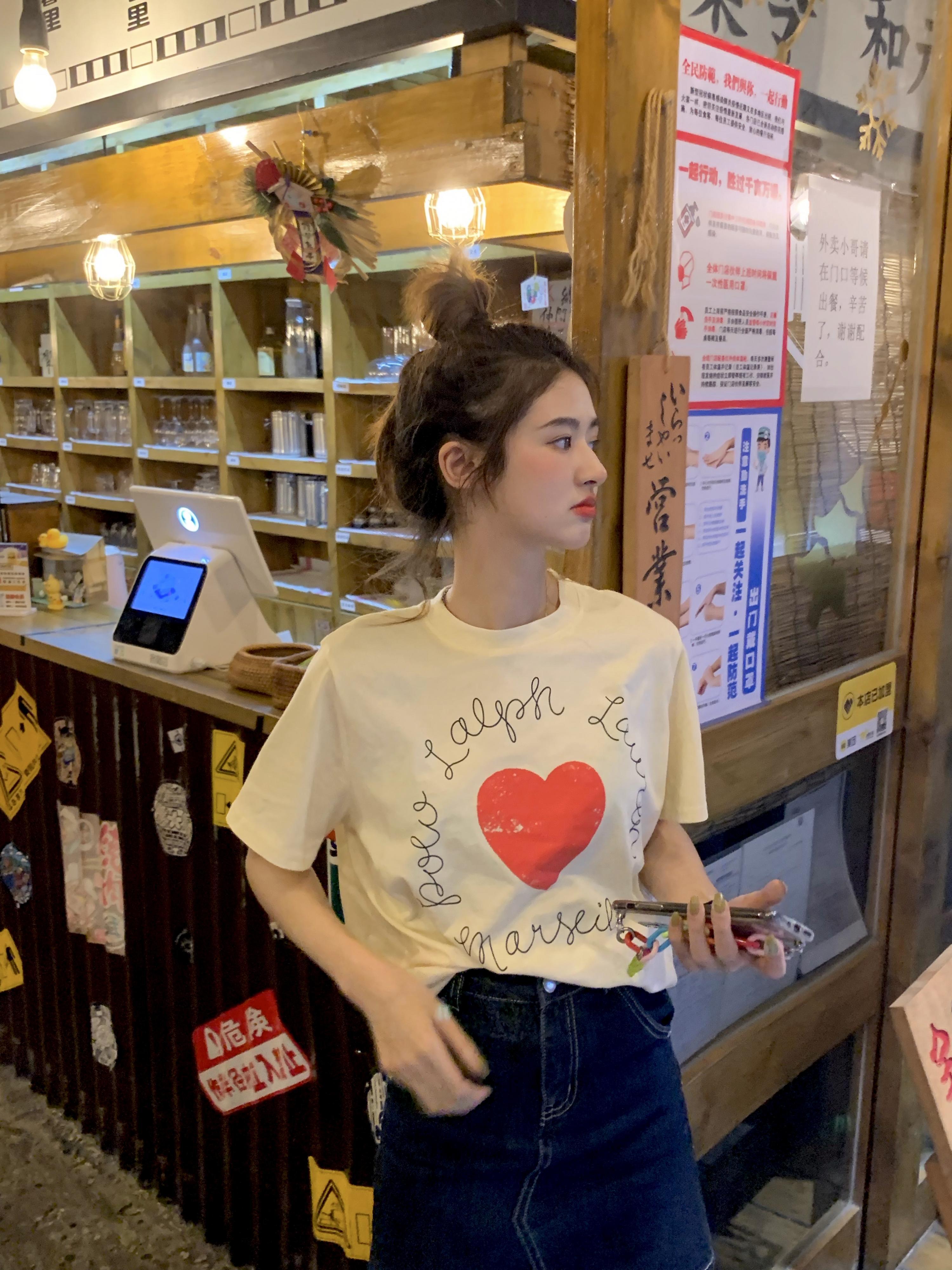 スタイルトレンドカジュアルTシャツ夏服ルーズプリント柄トップス 原宿 夏物 ミドル丈 MONROE43988155776