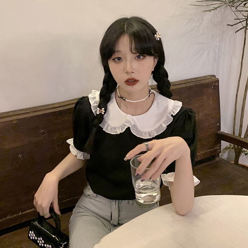 カラーシャツ レディース夏服スタンダードスリーブスタイルブラウス レトロ 夏物 SYJ15742878503