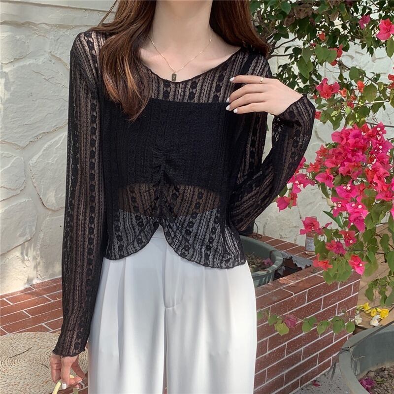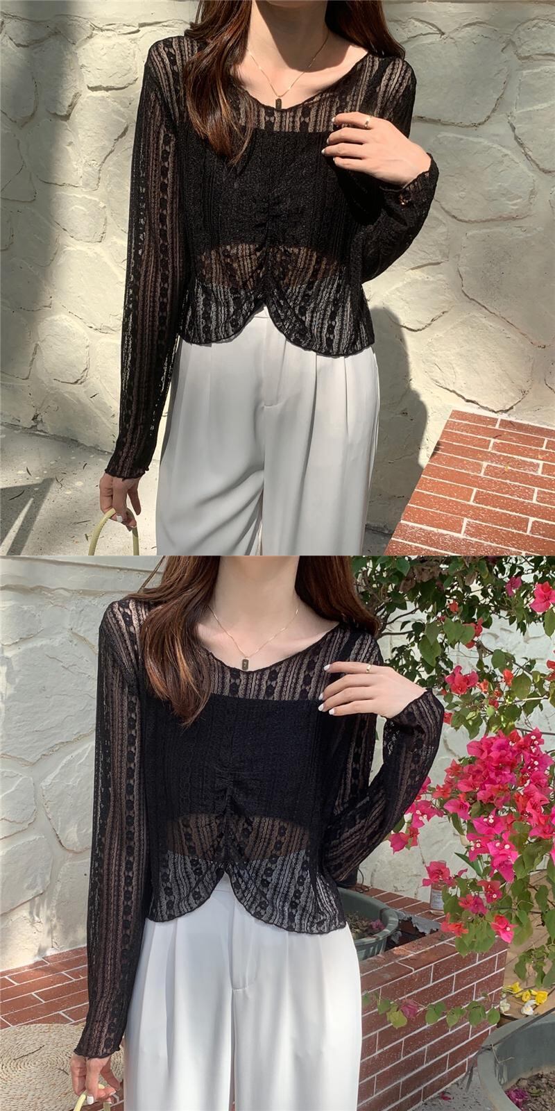 シフォンシャツ 夏服スタイルギャザールーズレーストップス ロング 夏物 長袖 YY86416037129