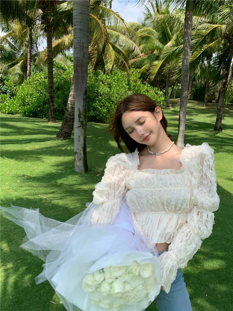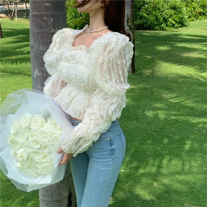 長袖スリーブレースシフォンシャツ レディーススプリング夏服ショートトップス ロング 春物 夏物 オフショルダー YY98650282615