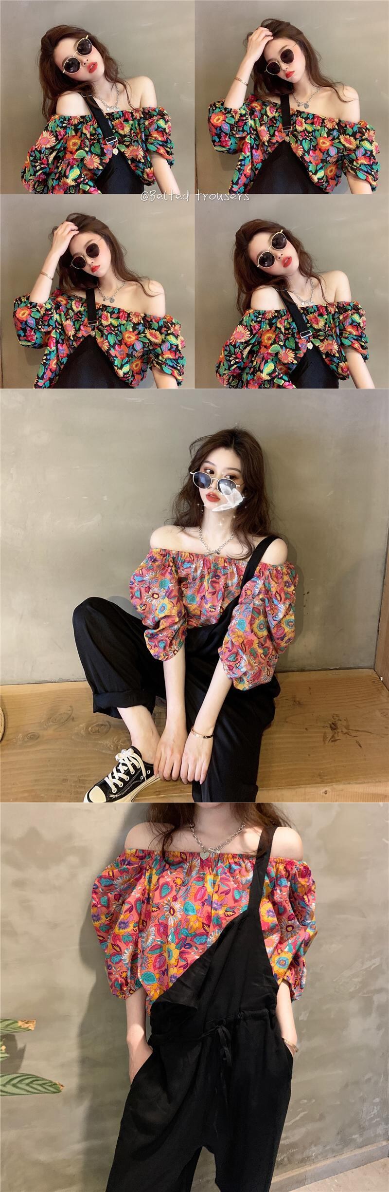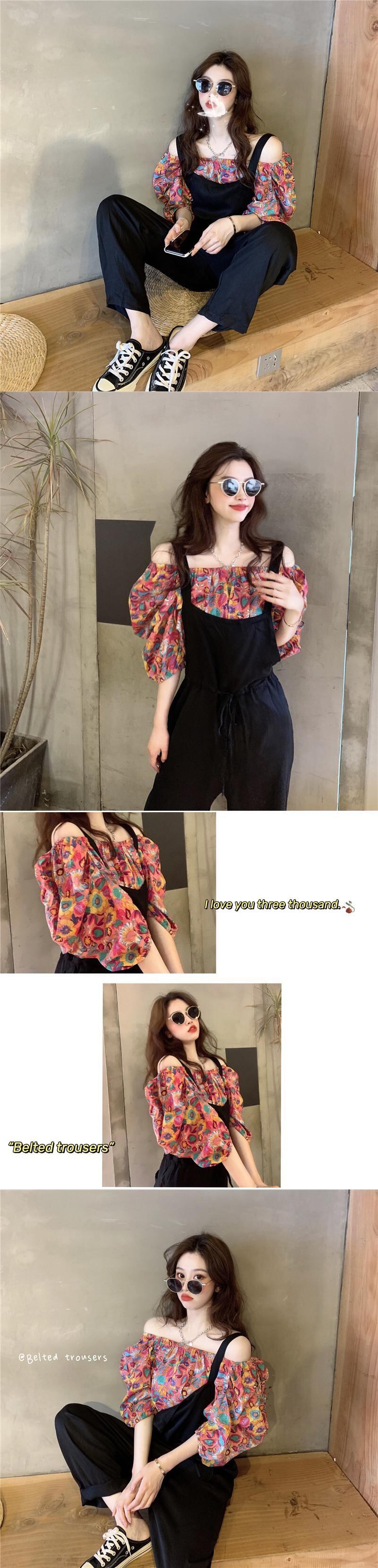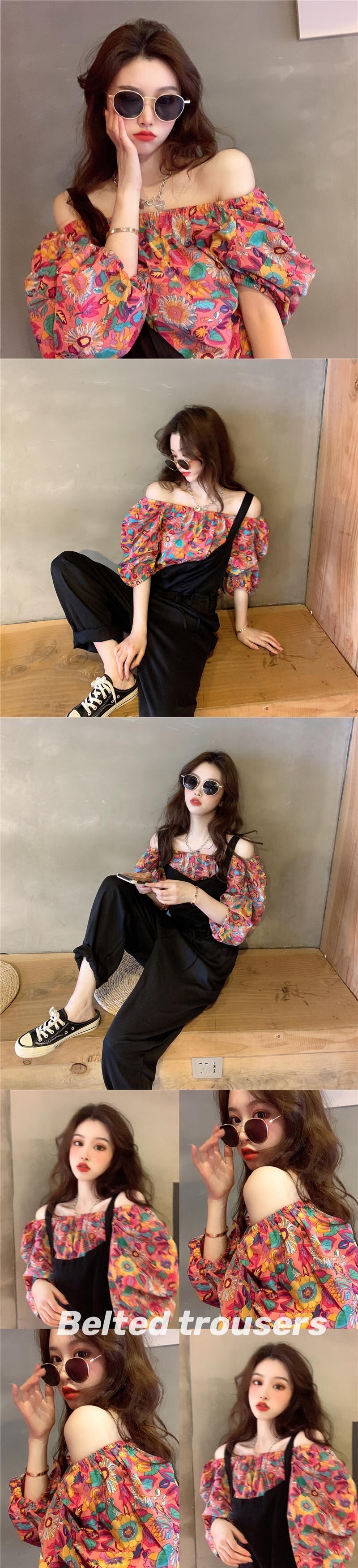 韓国ファッションスタンダードプリントトップス ショーツ レトロ スタイル YY42822339295