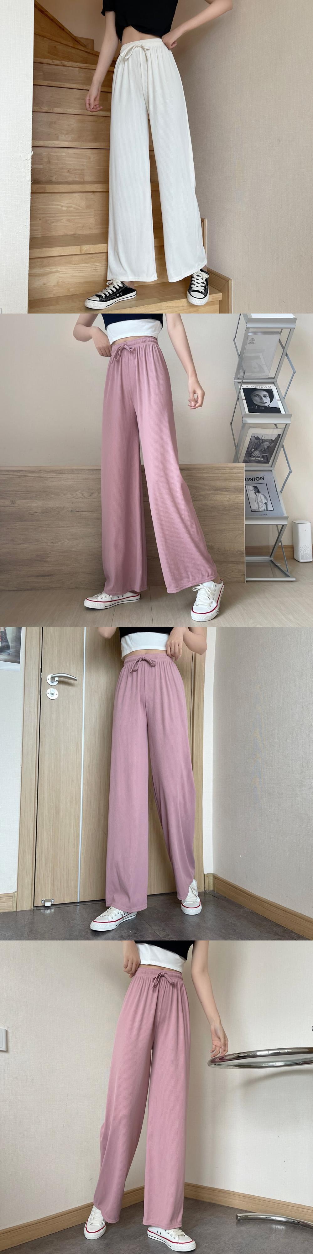 ハイウェストパンツ レディース薄手カジュアルニット ピンク ウエスト YY10150390328