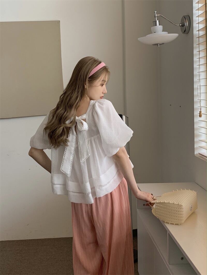 ホワイトスリーブシフォンシャツ レディース薄手夏服ショートカラートップス 大人ガーリー スウィート キュート カジュアル 夏物 スクウェア MONROE64943094376