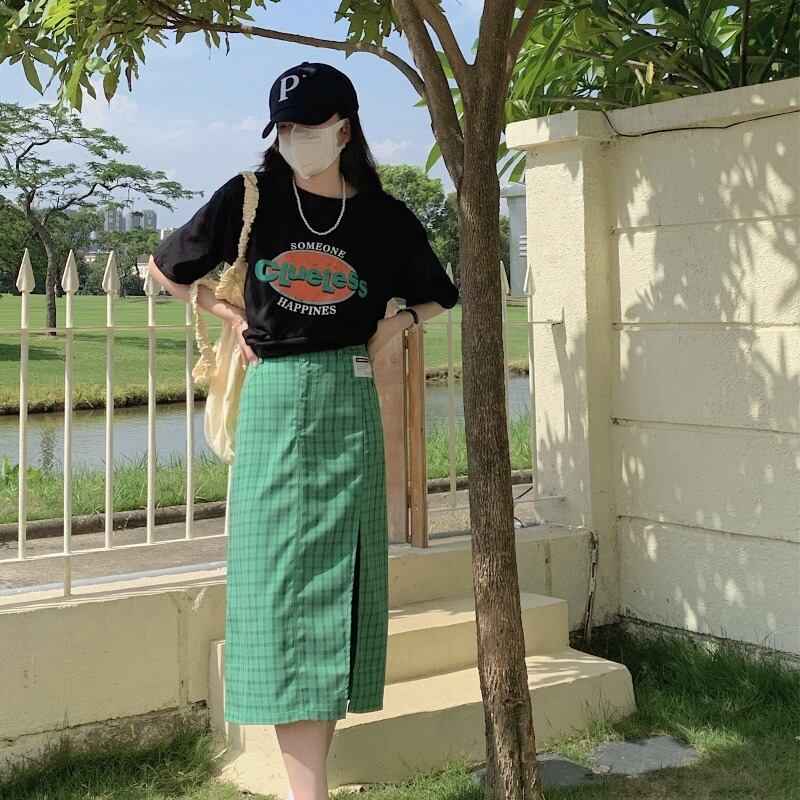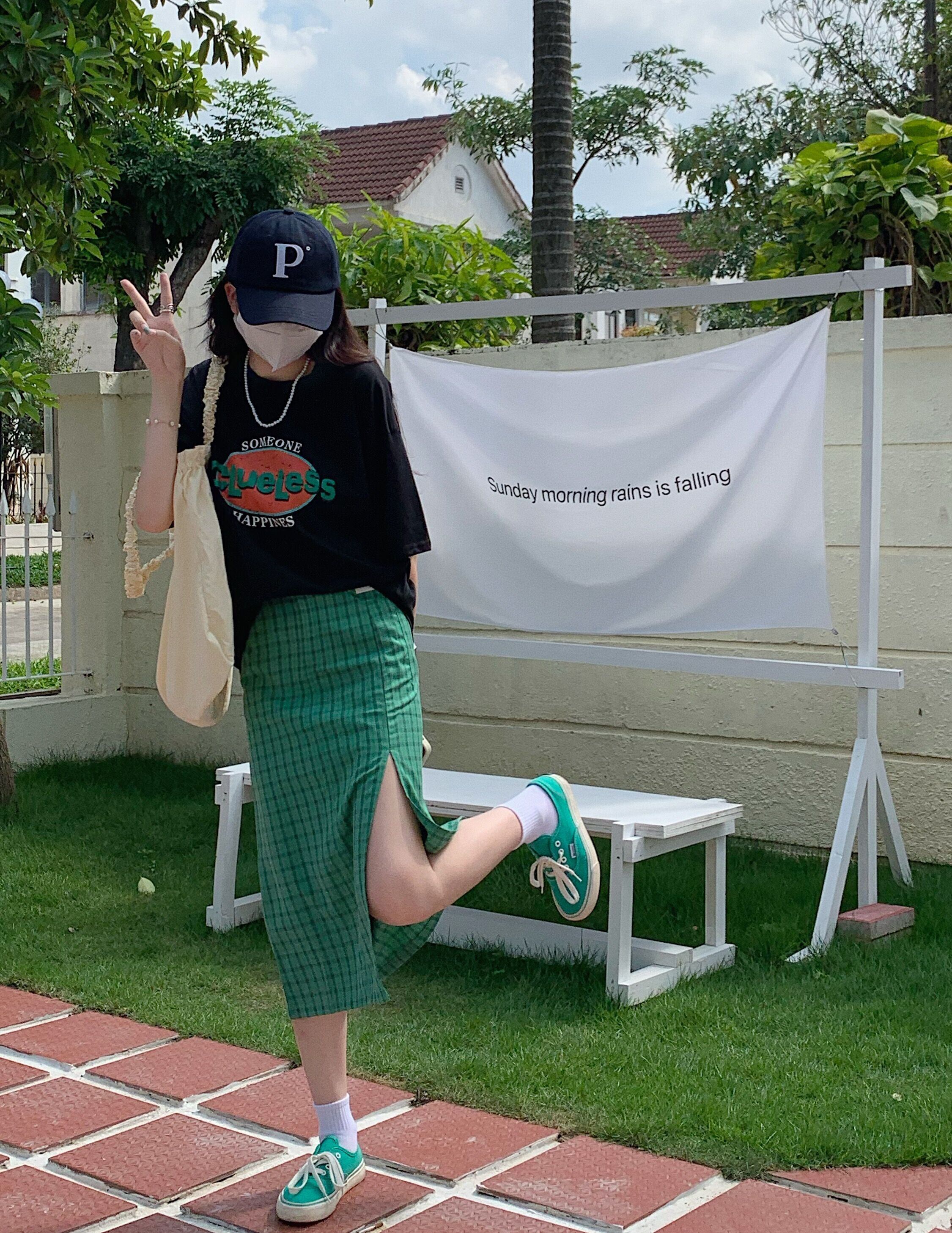 トレンドTシャツ夏服プリントルーズブラックトップス 夏物 ミドル丈 MONROE49658192193