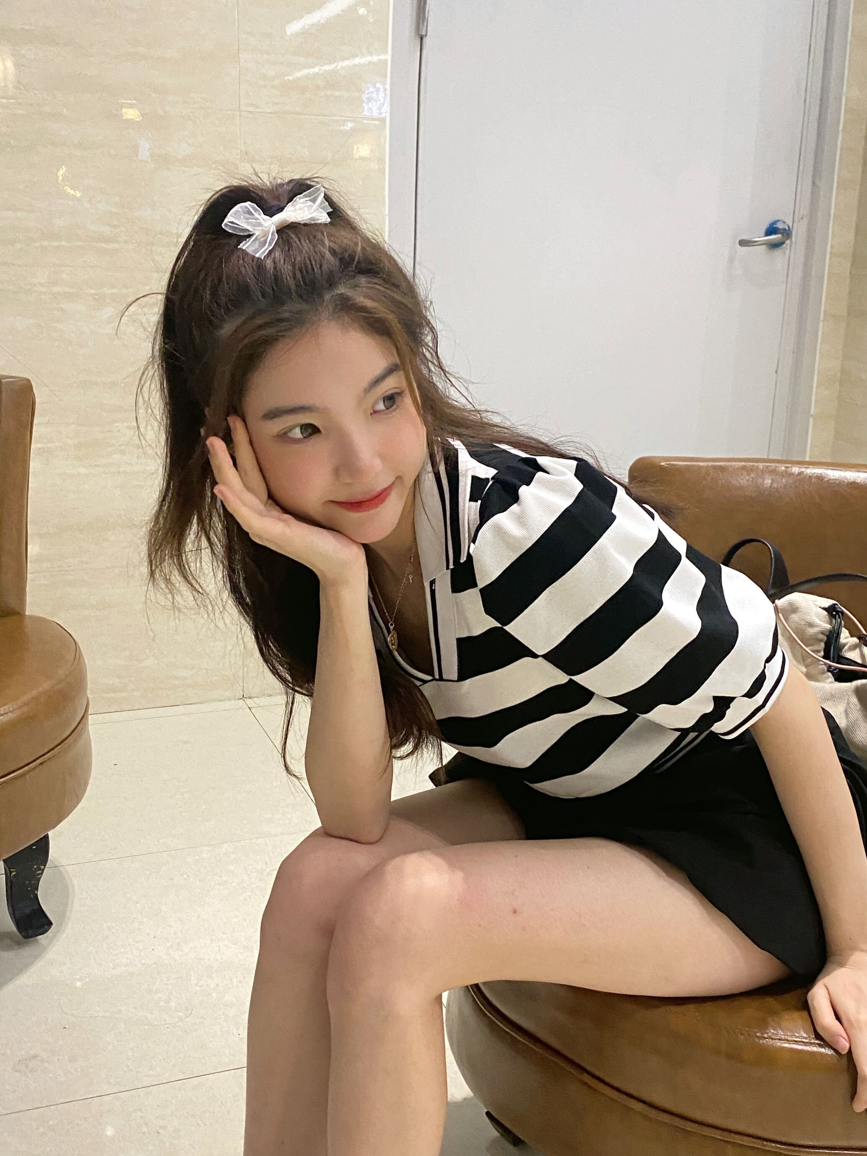 Vネック薄手ショートTシャツ夏服ルーズストライプトップス 夏物 MONROE88022194921