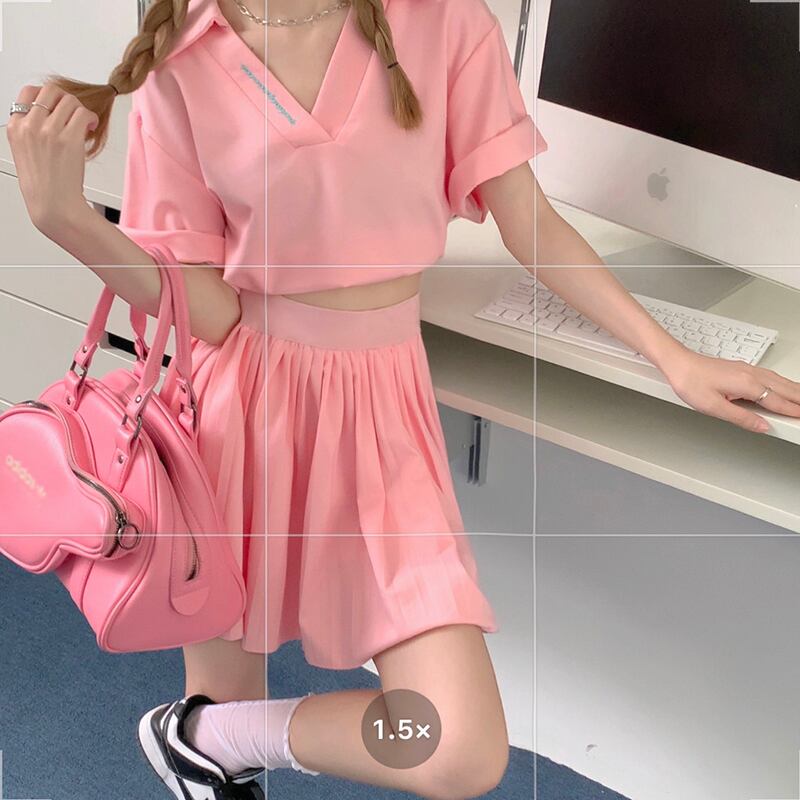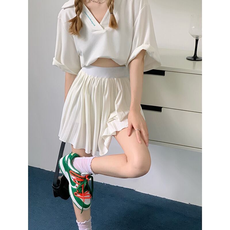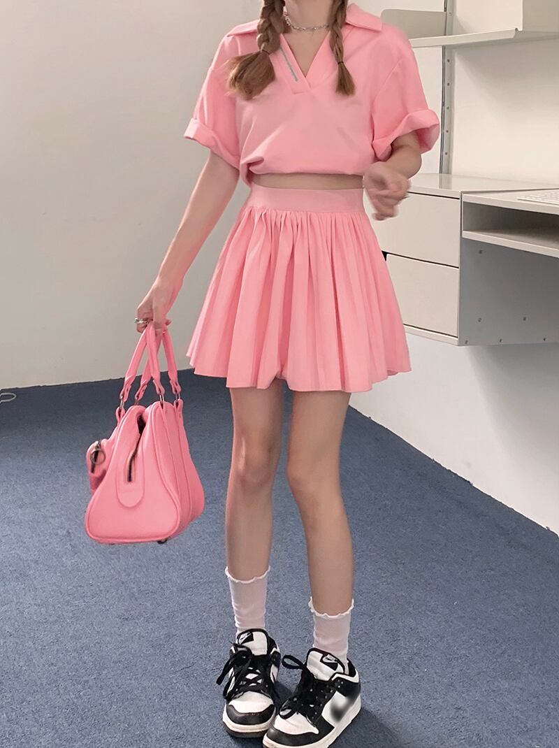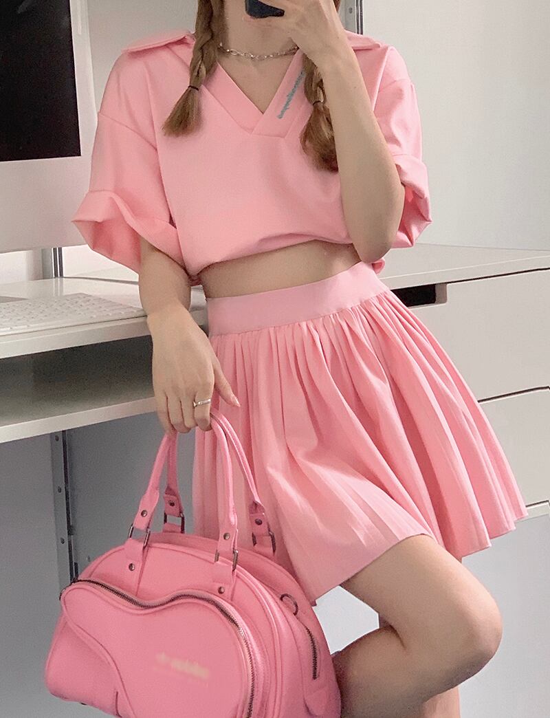 スタイル夏服レディースカジュアルVネックトップス プリーツスカート 夏物 MONROE65257786174