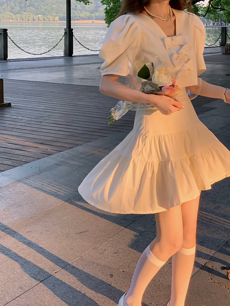 夏服レディースショートシャツ トップス スカート 大人ガーリー スウィート キュート カジュアル 夏物 MONROE3913408314