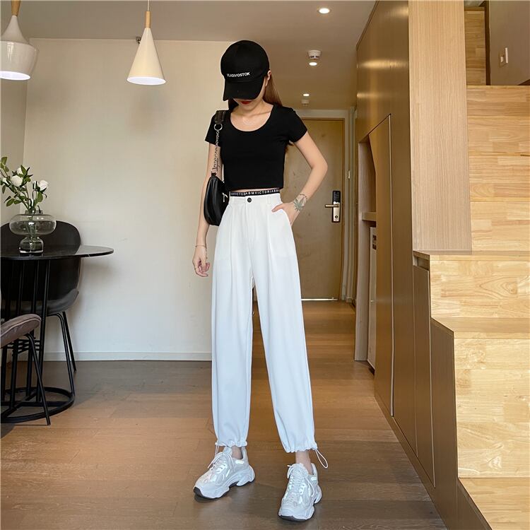 ホワイトパンツ レディース夏服薄手ルーズカジュアルハイウェストウェスト コルセット 夏物 ウエスト SPM71243453079
