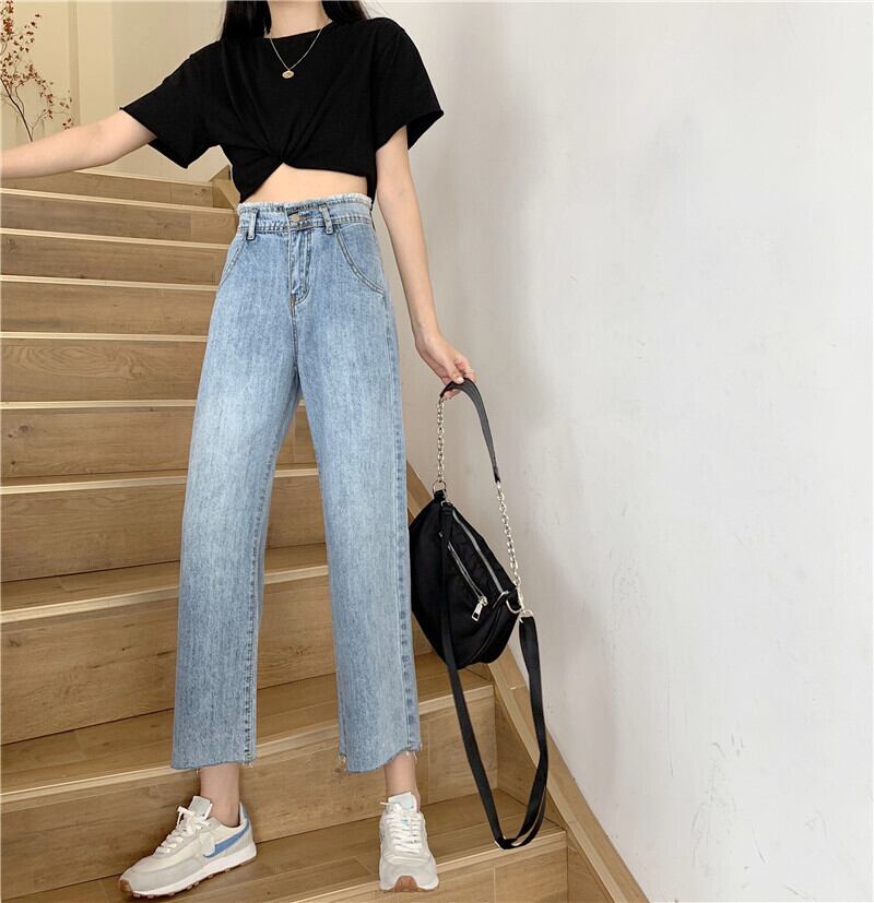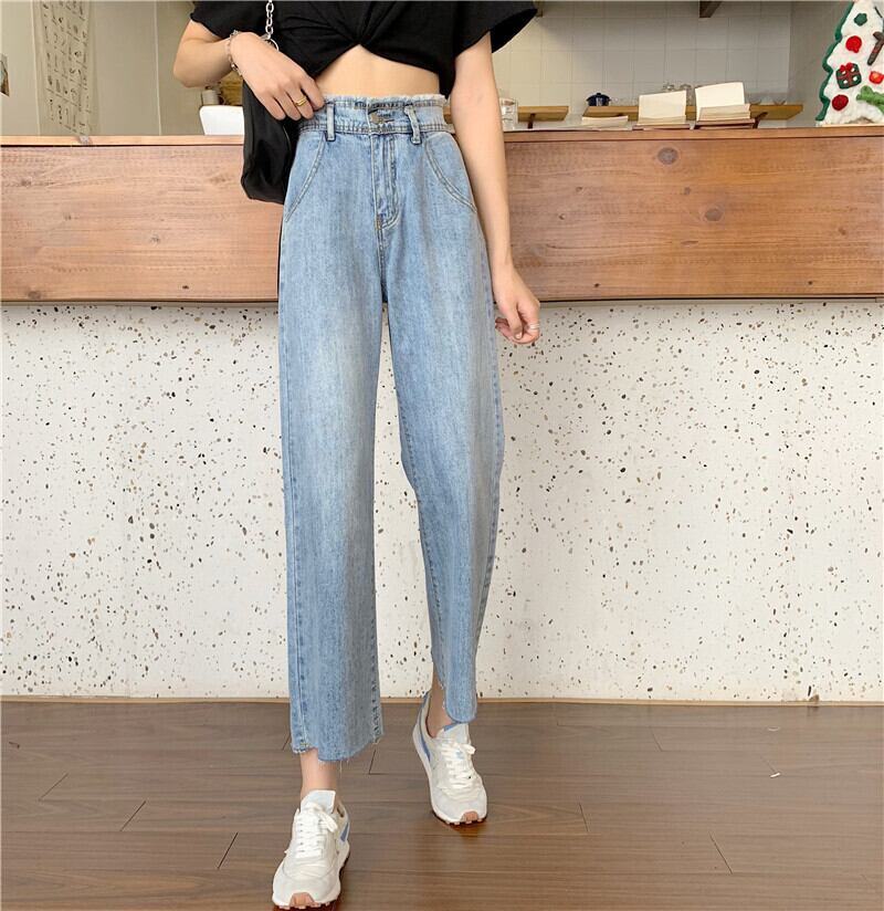 ハイウェストジーンズ スプリング韓国ファッションルーズパンツ 薄手 レッド 春物 ウエスト SPM26525158514
