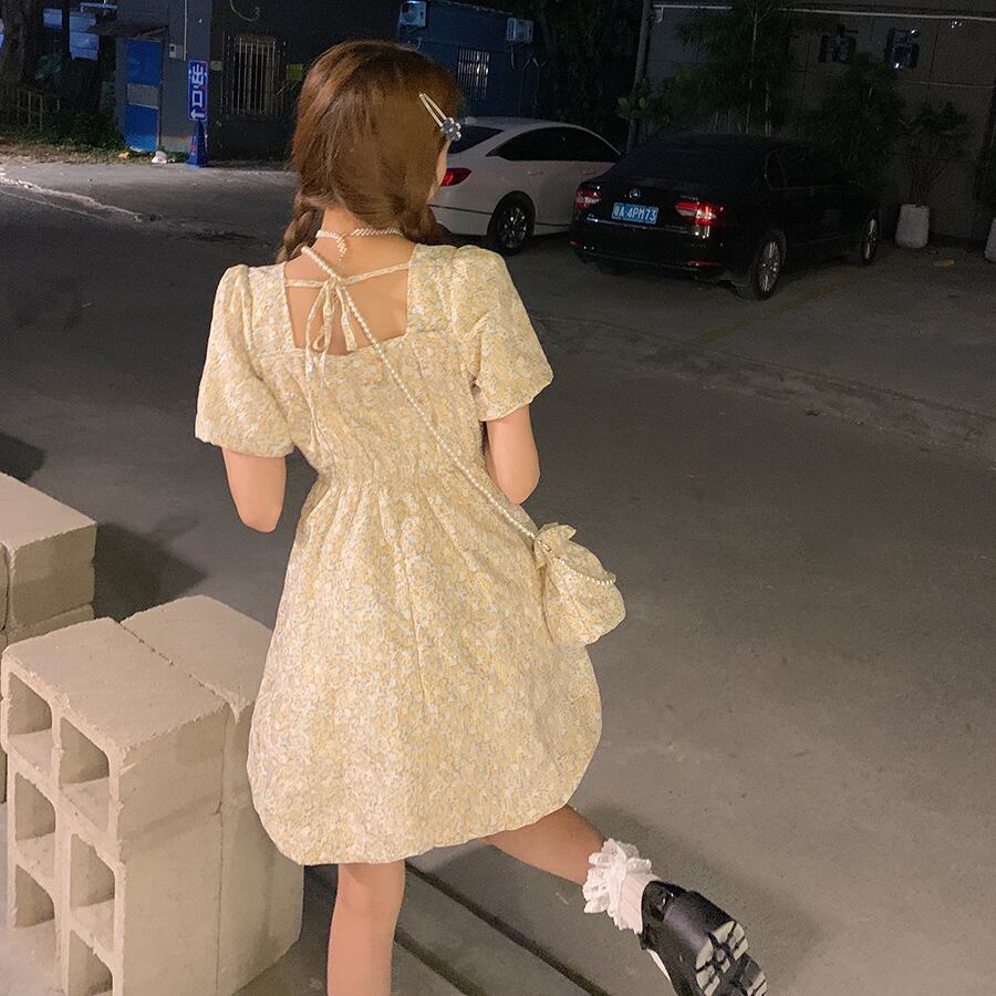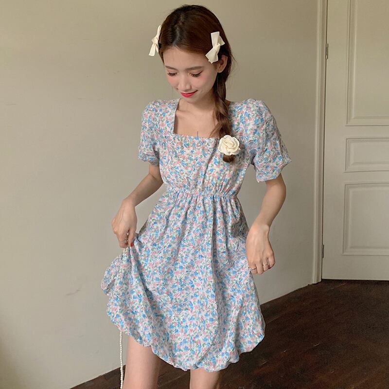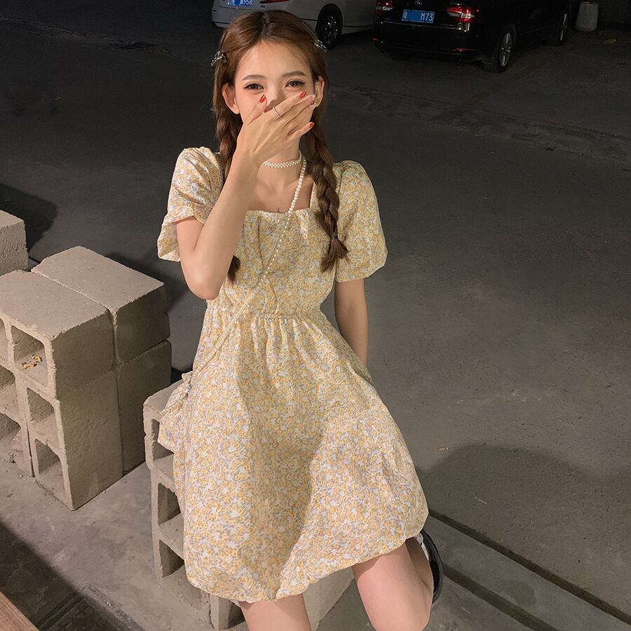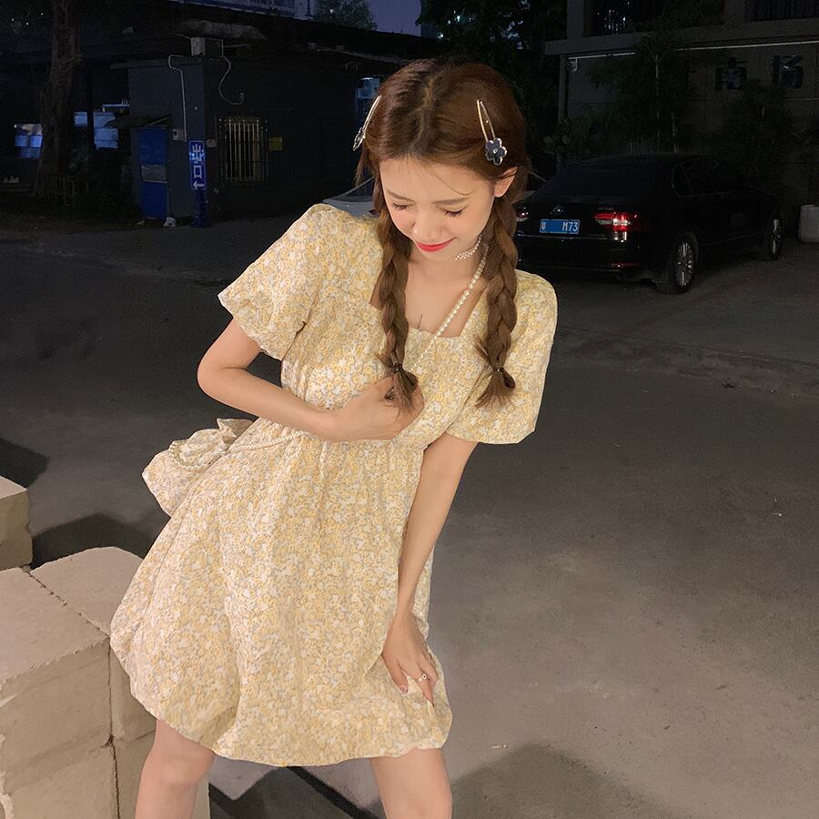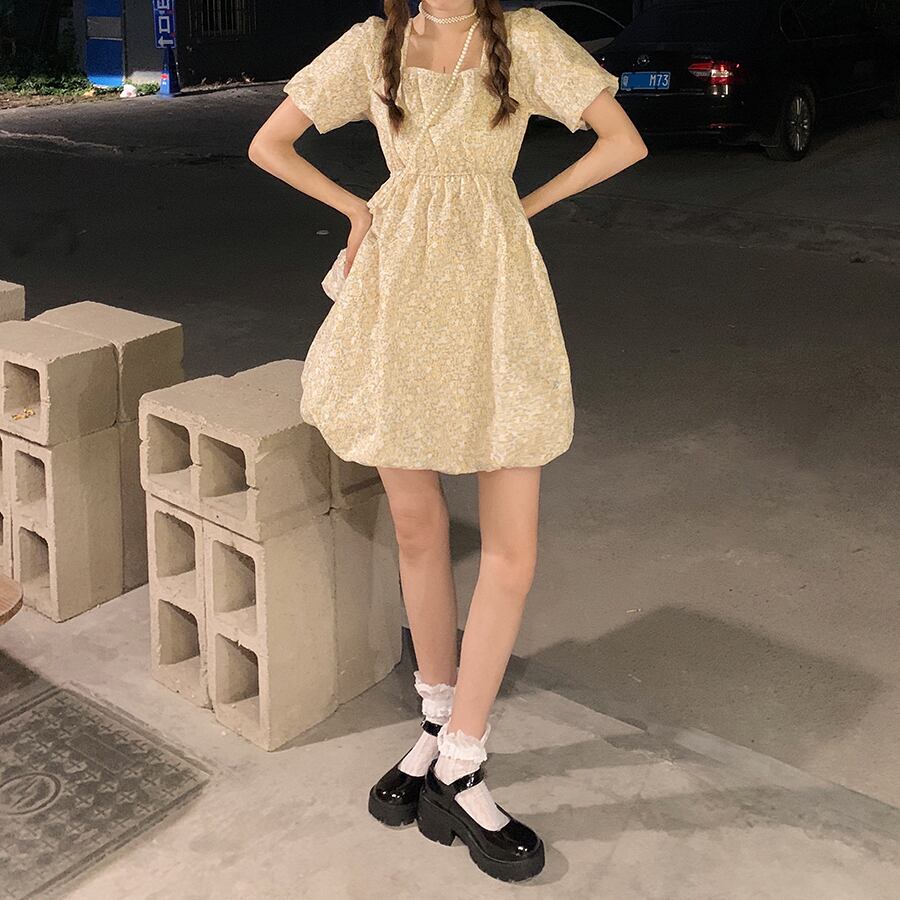 スリーブフローラルワンピース夏服ショートスカート 夏物 花柄 SPM70525921185