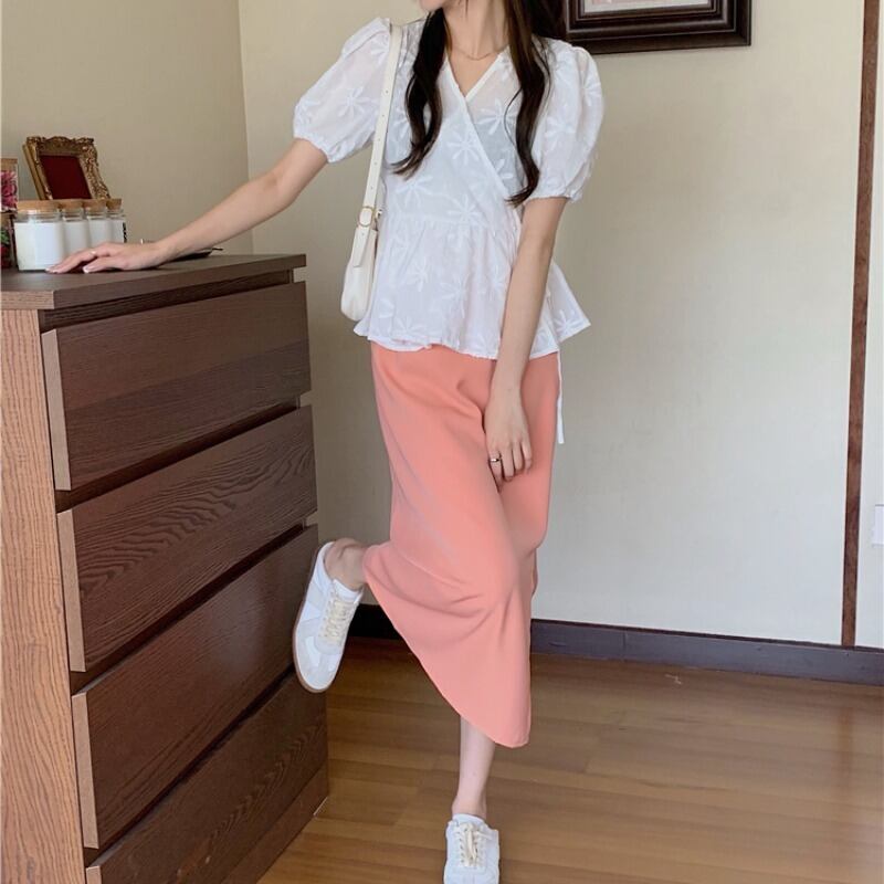 色:レースシャツ3809#,ハーフ丈スカート3810#