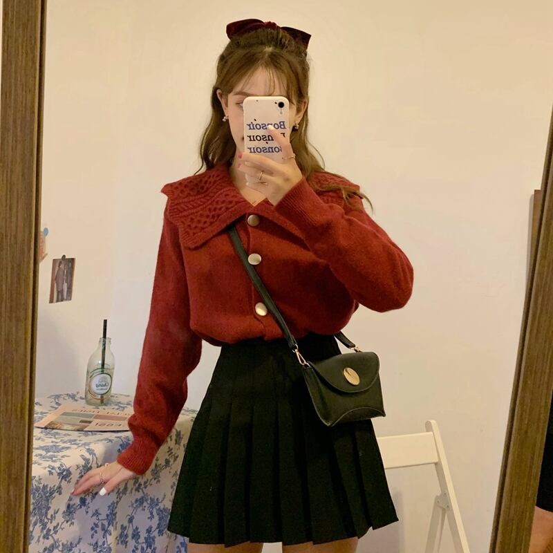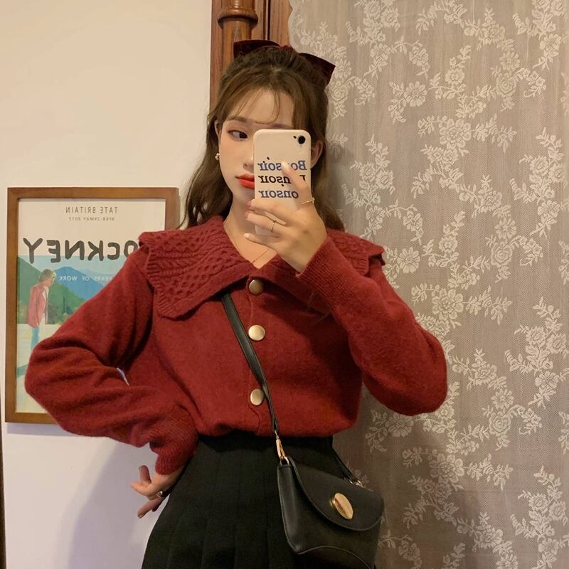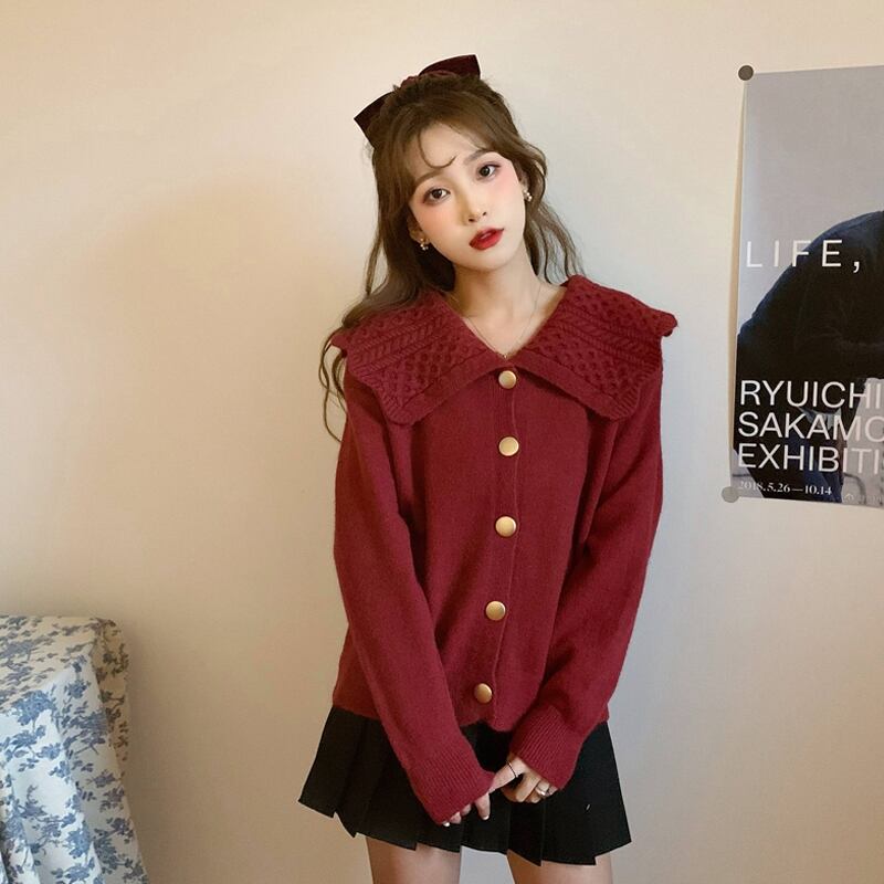 レッドセーター スプリング秋物韓国ファッションスタンダードルーズニットカーディガンジャケット レトロ 春物 オータム SPM26172042861