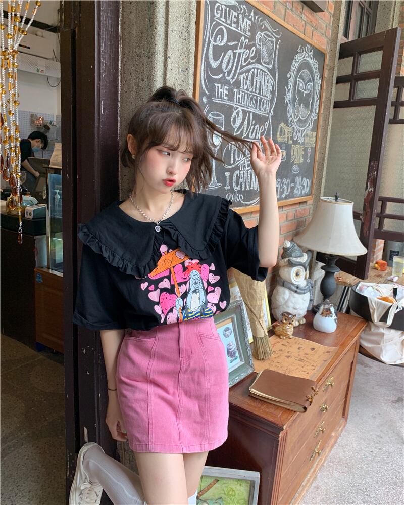 カラーブラックルーズTシャツレディース夏服トレンド 夏物 MONROE16552730787
