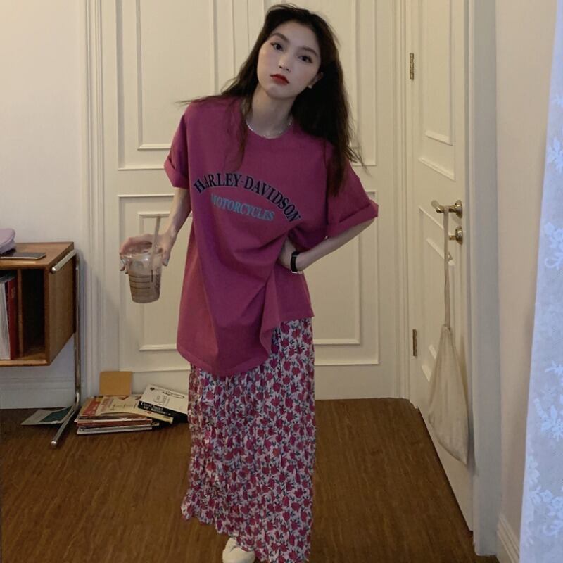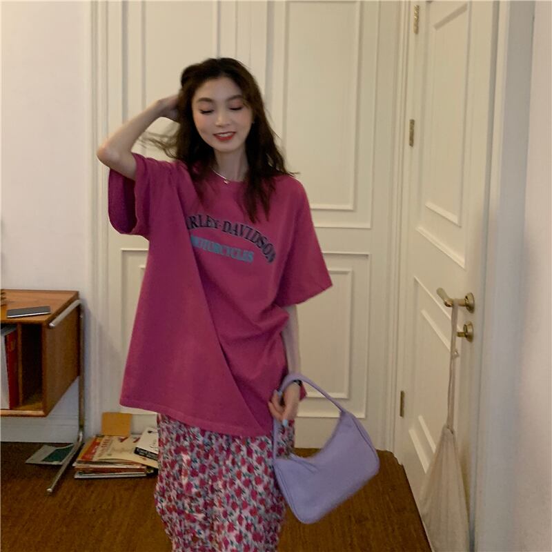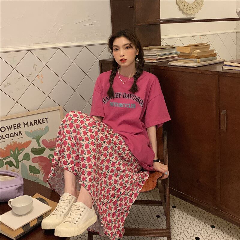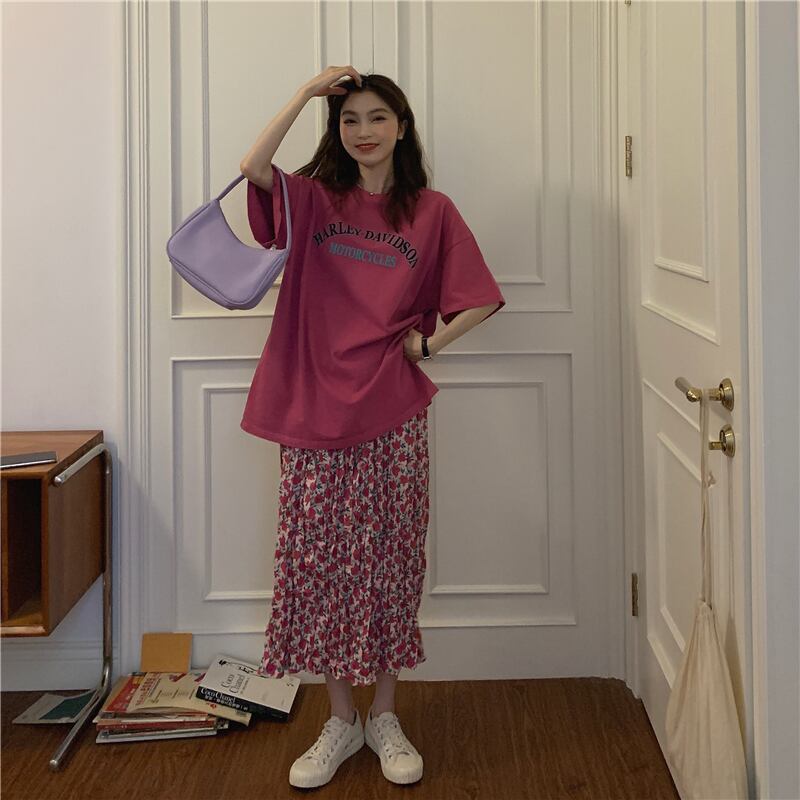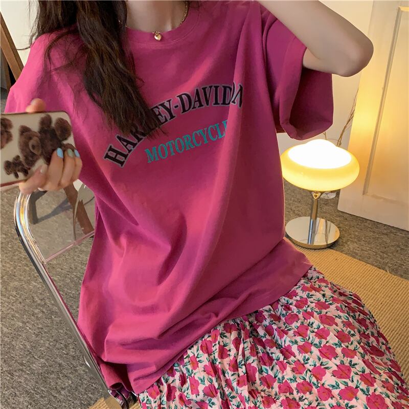 レッドルーズプリントTシャツレディース夏服トレンド 夏物 ミドル丈 MONROE87745364437