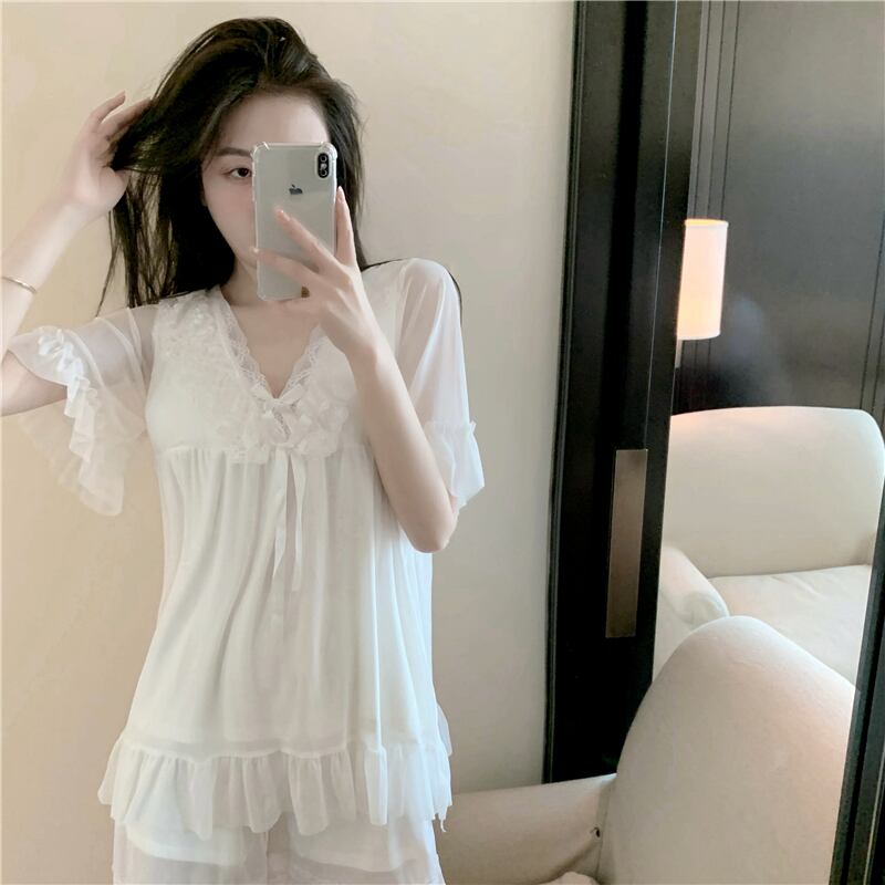 レディース夏服スタイルレース薄手Vネックショーツ カジュアル 夏物 ワンナンバー29788462613