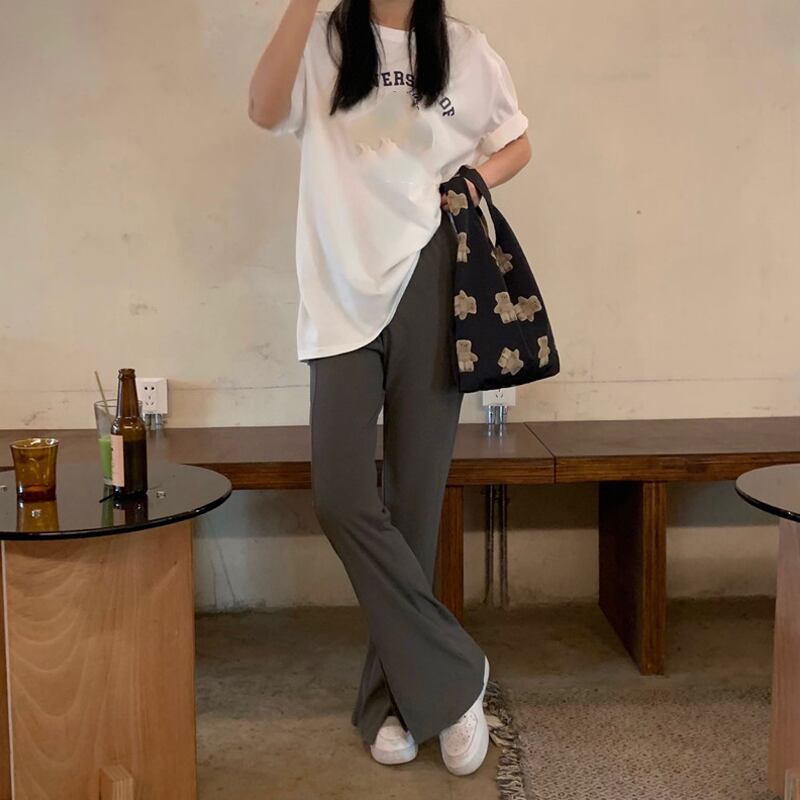 カジュアルパンツ 夏服韓国ファッションハイウェストウェストグレー薄手 夏物 スタイル ウエスト SYJ63699326104