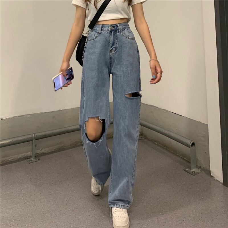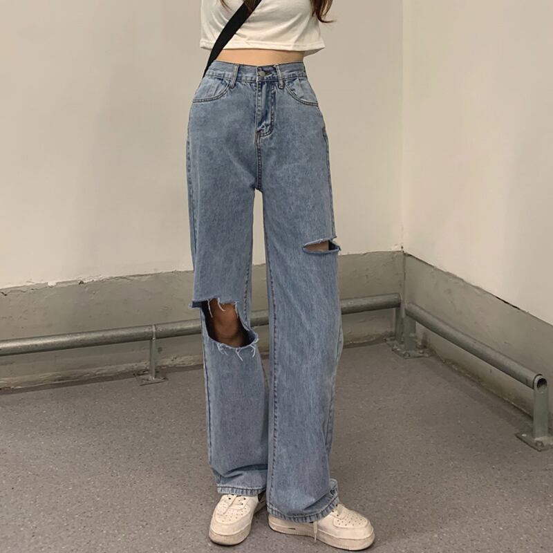 ジーンズ ルーズスプリング秋物夏服ハイウェストウェストワイドレッグパンツ 春物 夏物 オータム ワイドパンツ ウエスト SYJ78059035173