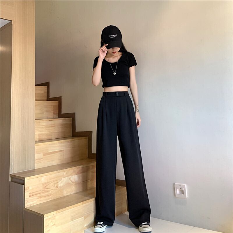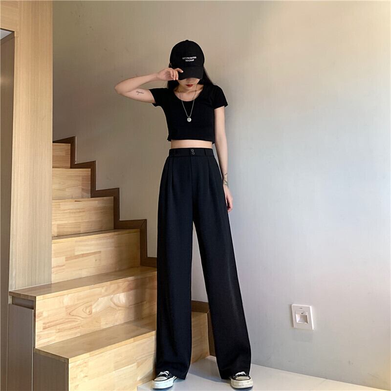 ブラックパンツ 夏服ハイウェストウェストルーズ 夏物 ウエスト SYJ14839042792