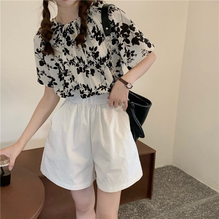 色:ブラックトップ,コーヒートップ,ホワイトショーツ,アプリコットショーツ
