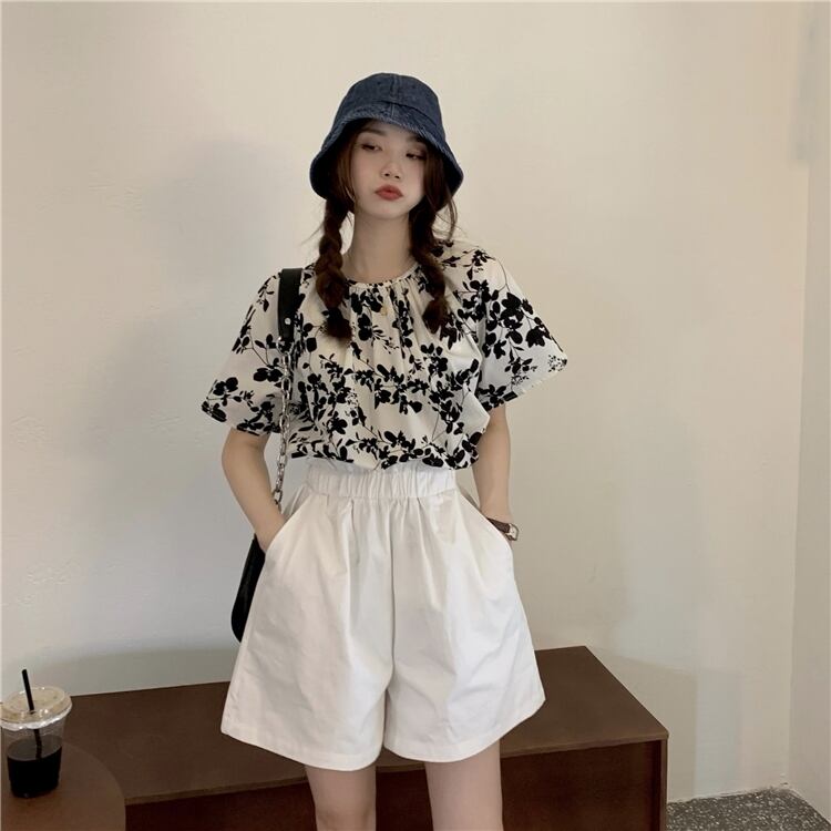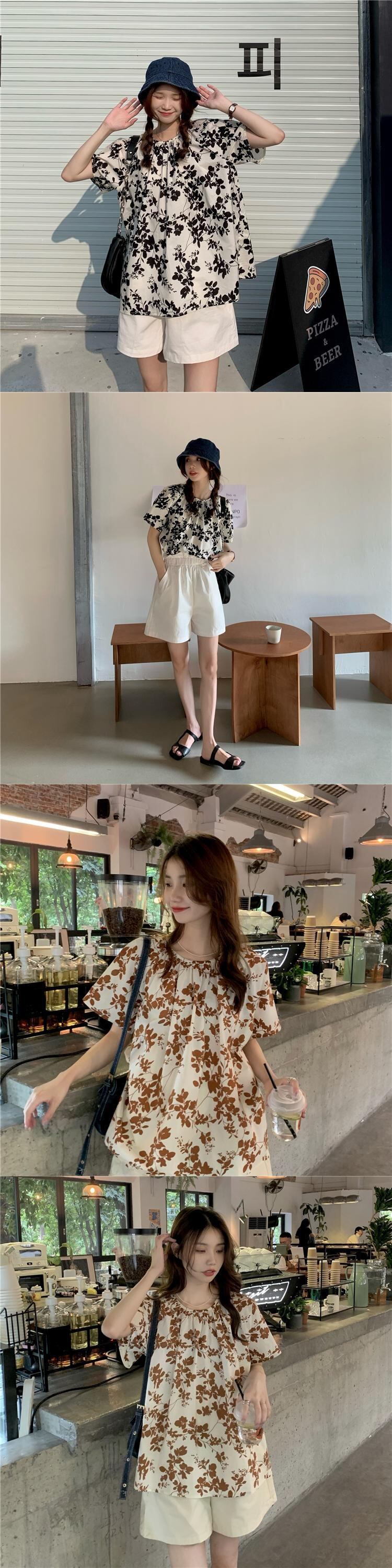 夏服スタンダードスタイルルーズカラープリントシャツ トップス レトロ 夏物 YY38786856999