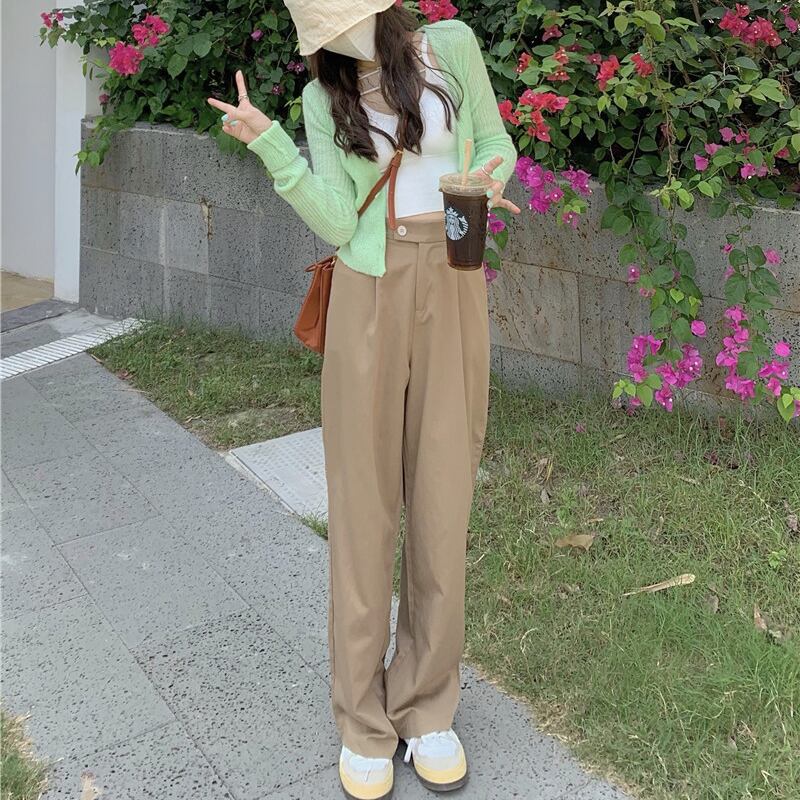 カーキカジュアルパンツ 夏服ルーズハイウェストウェスト薄手 夏物 ウエスト SYJ95403305134