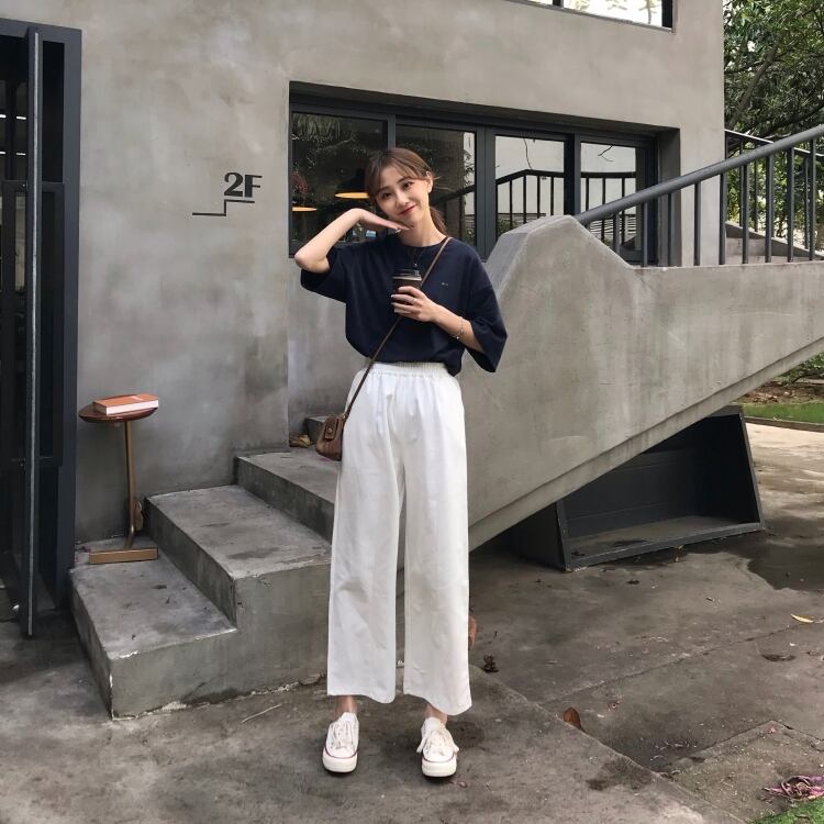 ホワイトパンツ ルーズスプリング秋物ハイウェスト薄手カジュアル 春物 オータム ウエスト SYJ68742873799