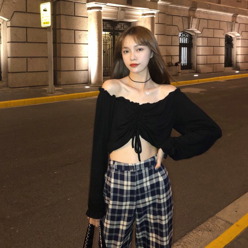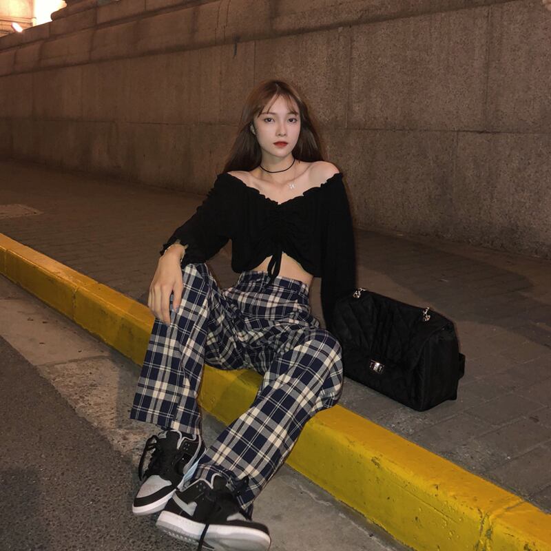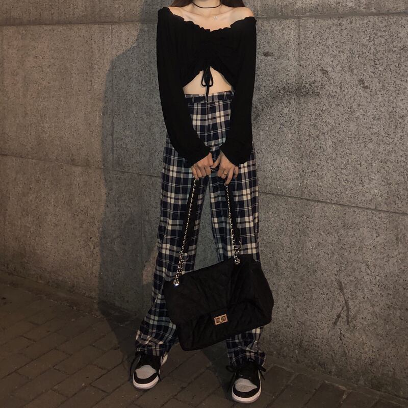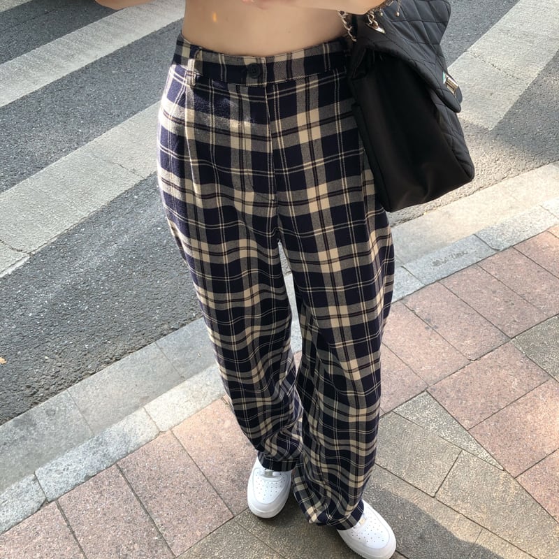 格子柄パンツ ルーズスプリング秋物ワイドレッグハイウェストウェストスリムカジュアル 春物 オータム ワイドパンツ ウエスト SYJ61969939270