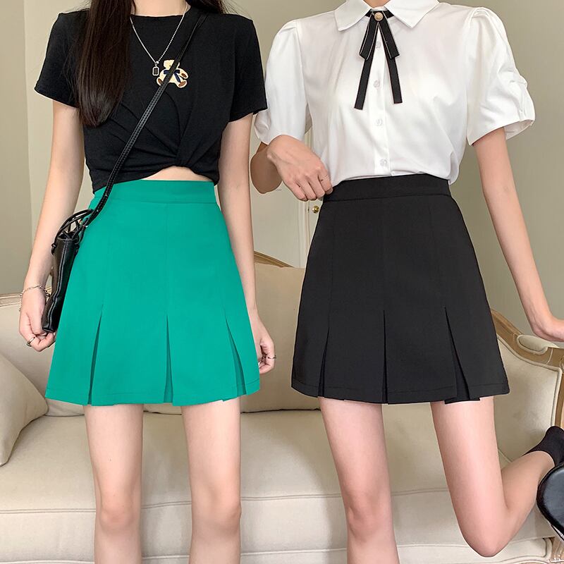 Aラインレディース夏服韓国ファッションプリーツハイウェストウェスト薄手 夏物 スカート スタイル ウエスト ワンナンバー77812656745