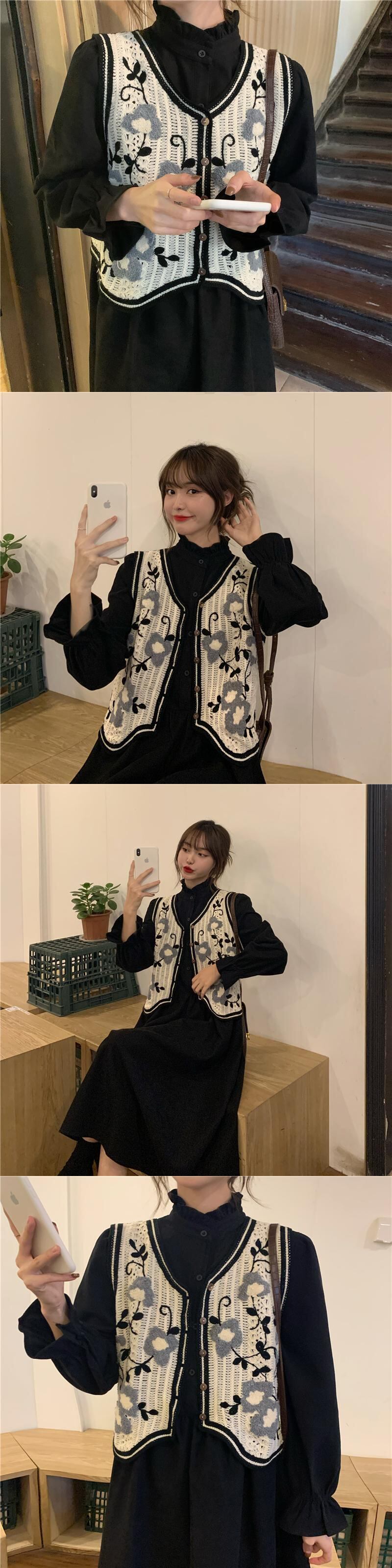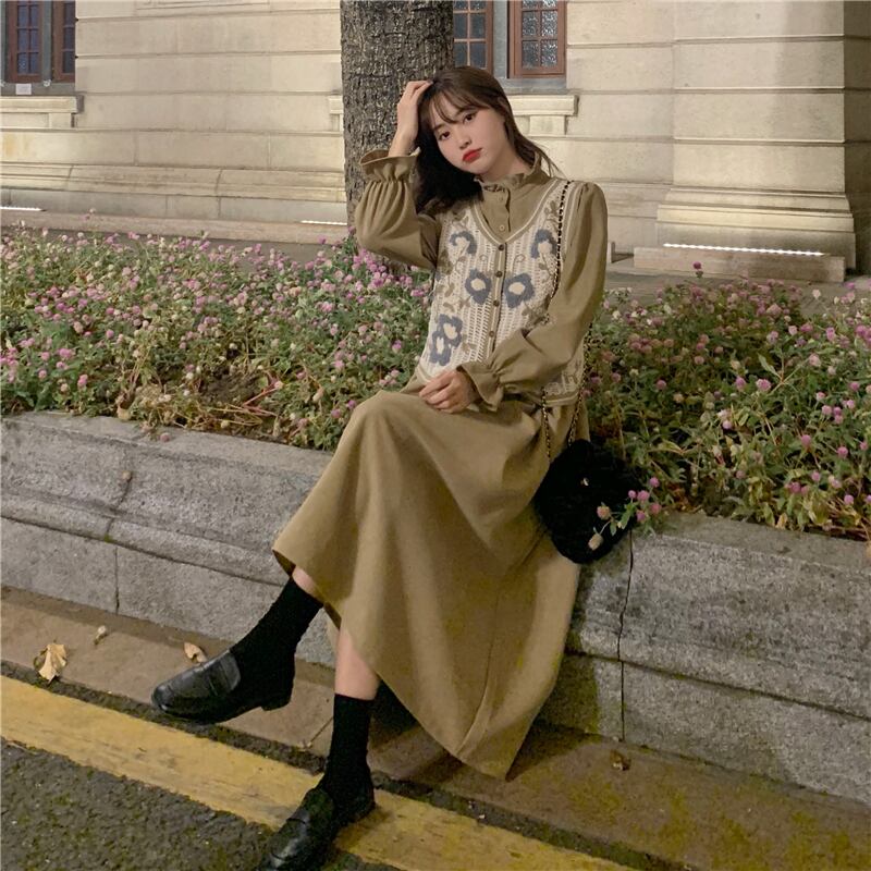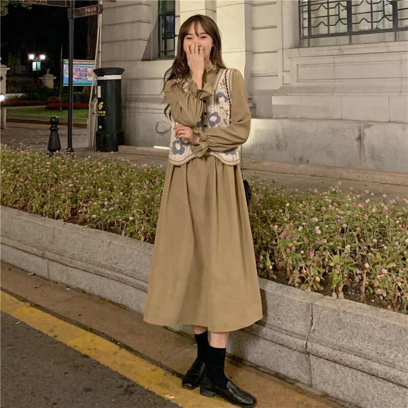 色:黒のワンピース,シングルカーキドレス,白いベストワンピース,アプリコットベストワンピース