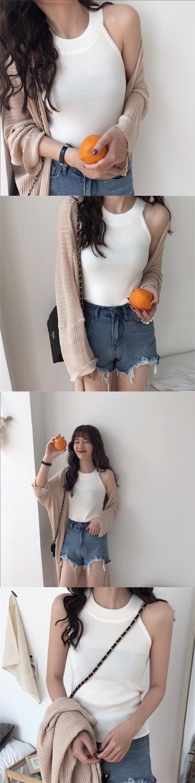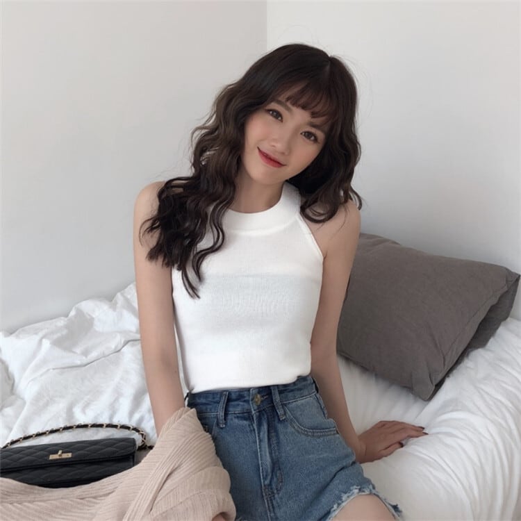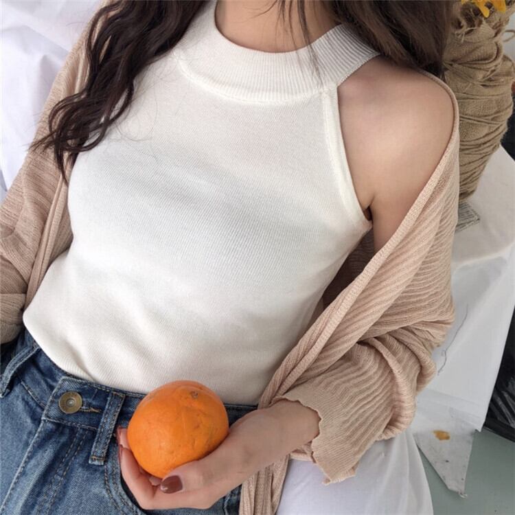 秋物韓国ファッションスリムノースリーブニットストラップレストップス オータム YY8020870