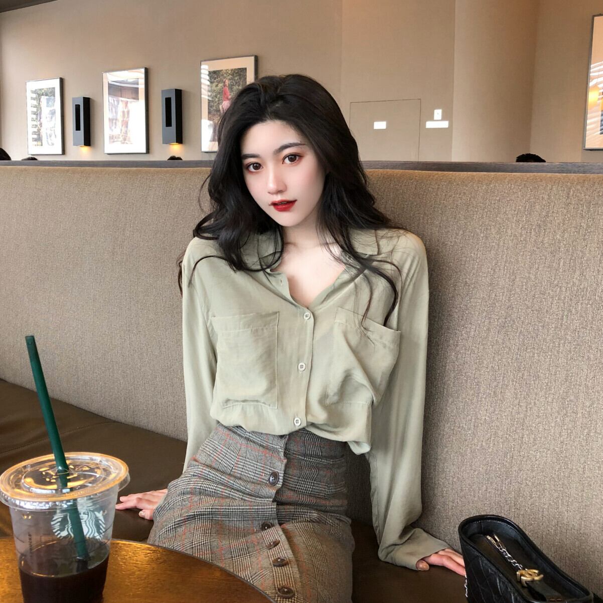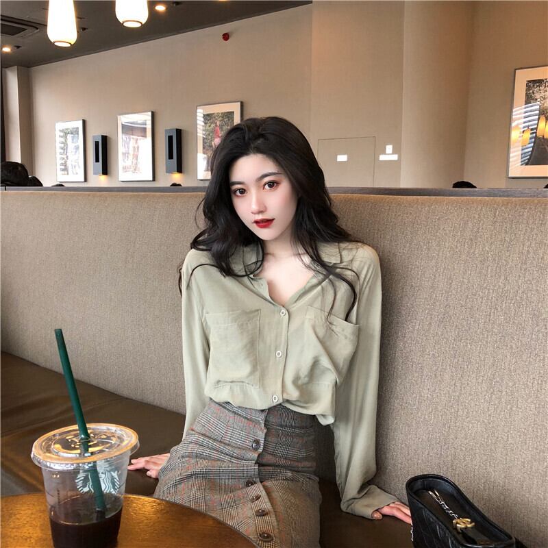 シャツ レディーススタンダードルーズカラーカーディガントップス 秋物ウィンター ロング レトロ オータム 冬物 長袖 YY3532963