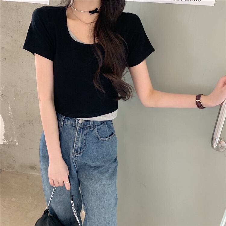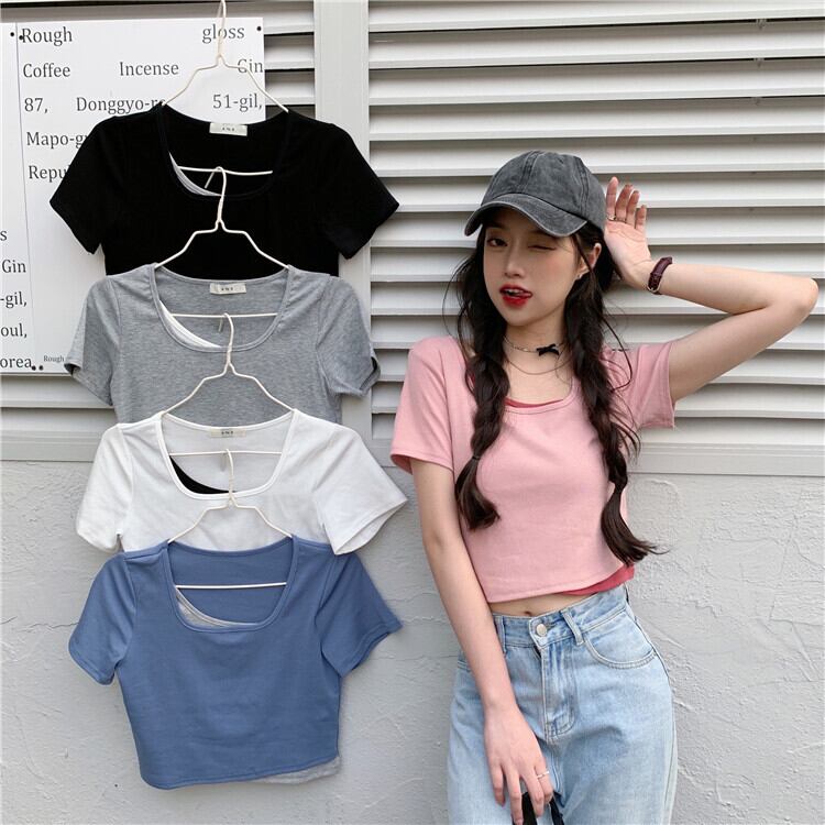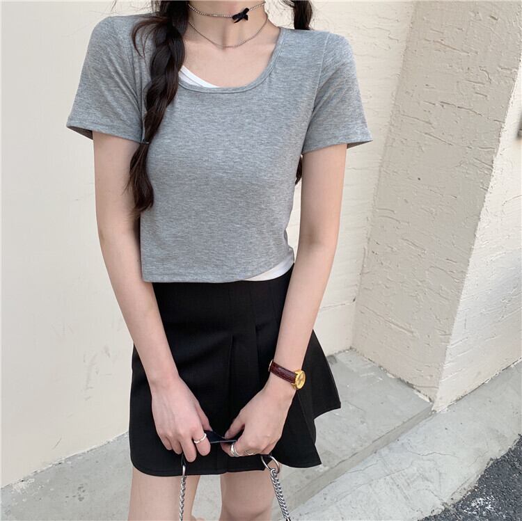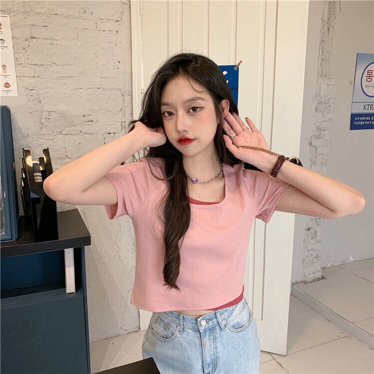 カラーショートTシャツレディース夏服トレンドトップス 夏物 SPM34043441773