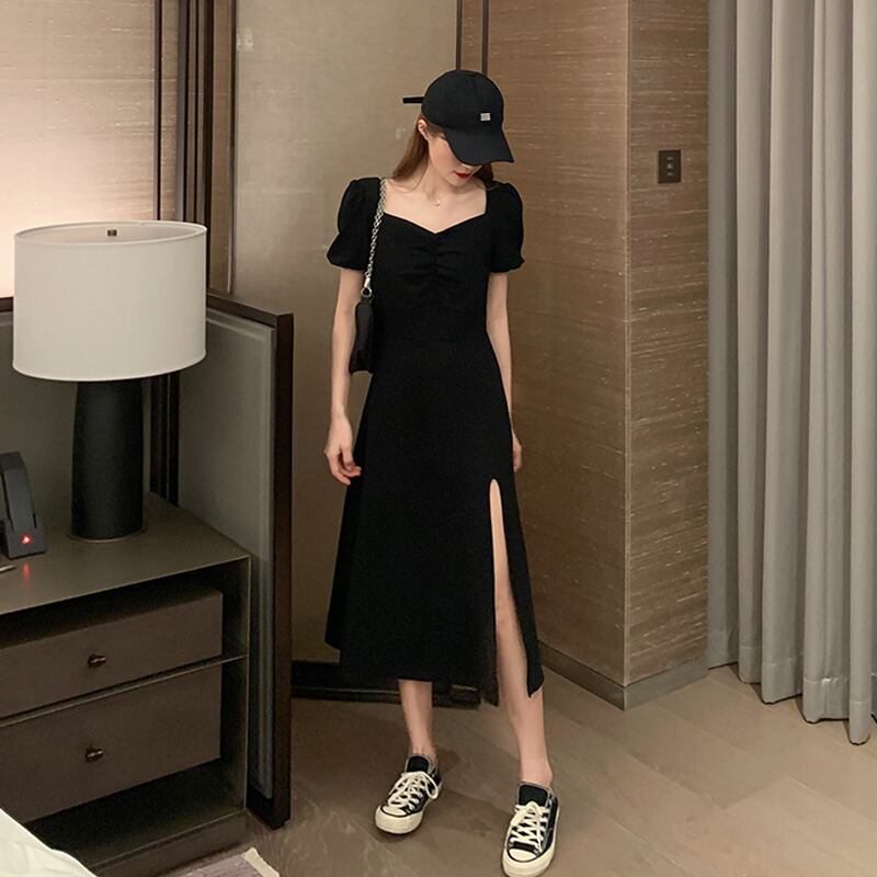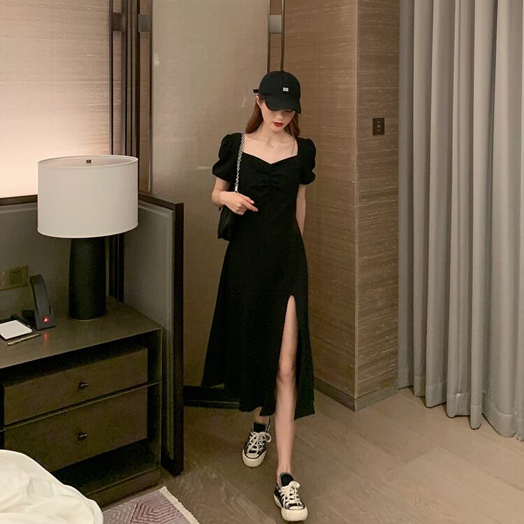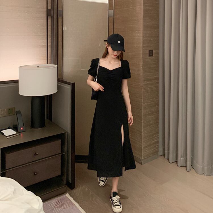 スタンダードスリーブワンピースレディース夏服ブラックスカート レトロ 夏物 SPM51238158240