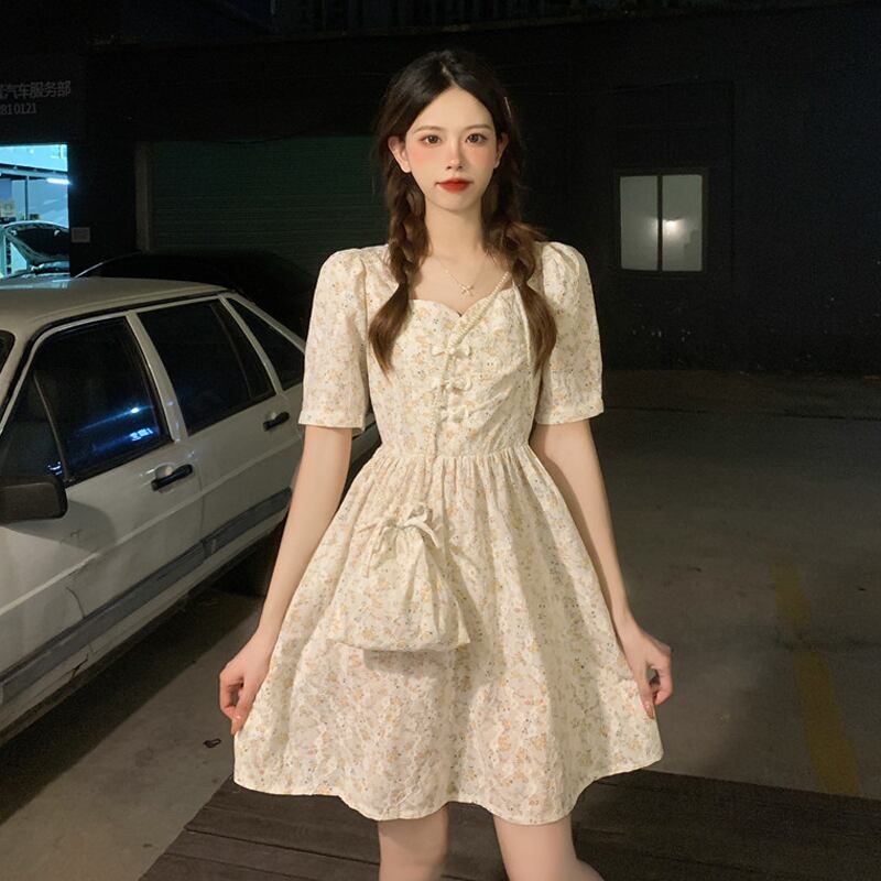 フローラルワンピースレディース夏服スリーブスカート 大人ガーリー スウィート キュート カジュアル 夏物 花柄 SPM82269630385